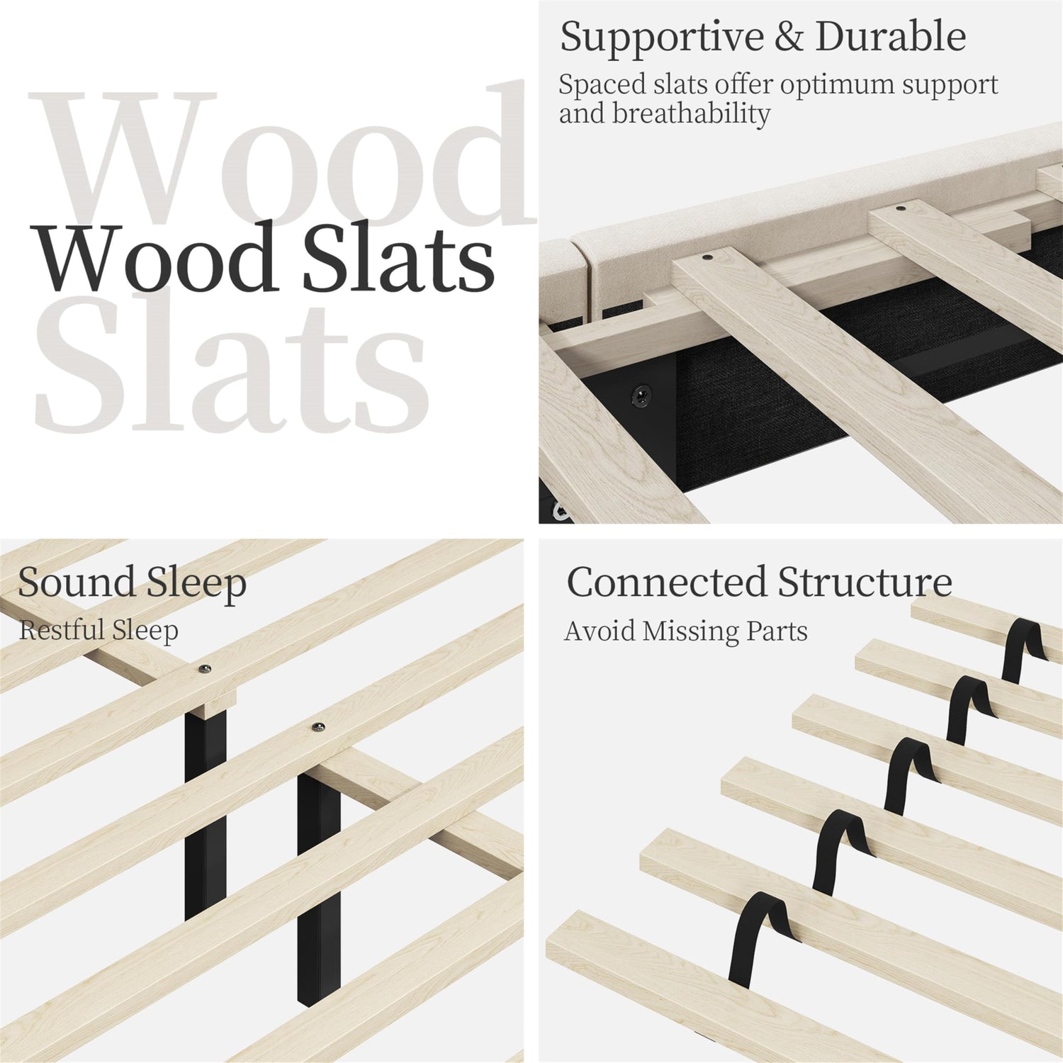 • Sturdy Wood Construction: Interior solid wood framework and robust support feet, 12 pieces of durable wooden slats, and a dense foam-padding border increase the comfort and durability of this full bed frame with wing design. With a maximum weight capacity of 750 lbs