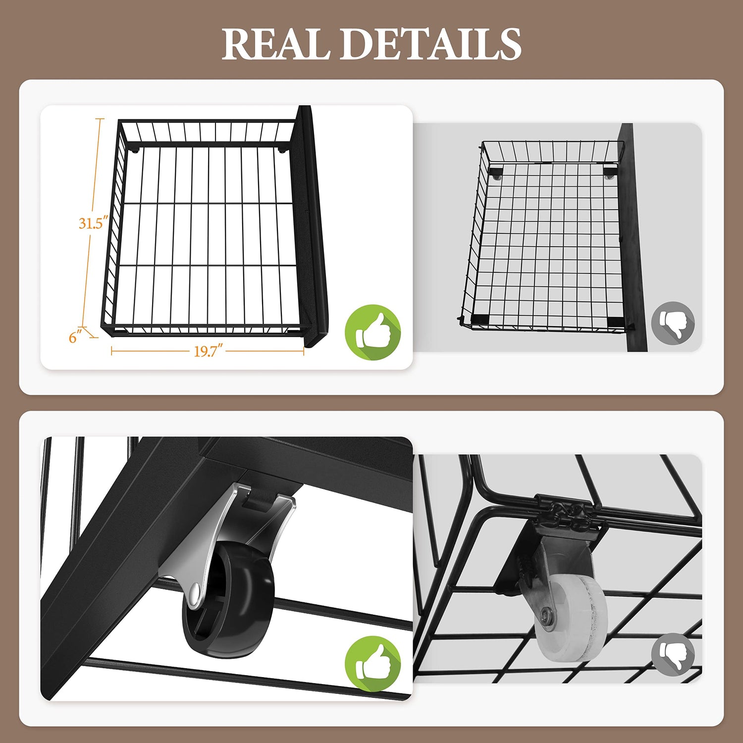 Designed with convenience in mind, the bed frame is equipped with four spacious wire netting storage drawers, each measuring 31.5’’L x 19.7’’W x 6’’H. These drawers glide smoothly on rollers, providing ample space to neatly organise off-season clothing and other items, ensuring your bedroom remains clutter-free.