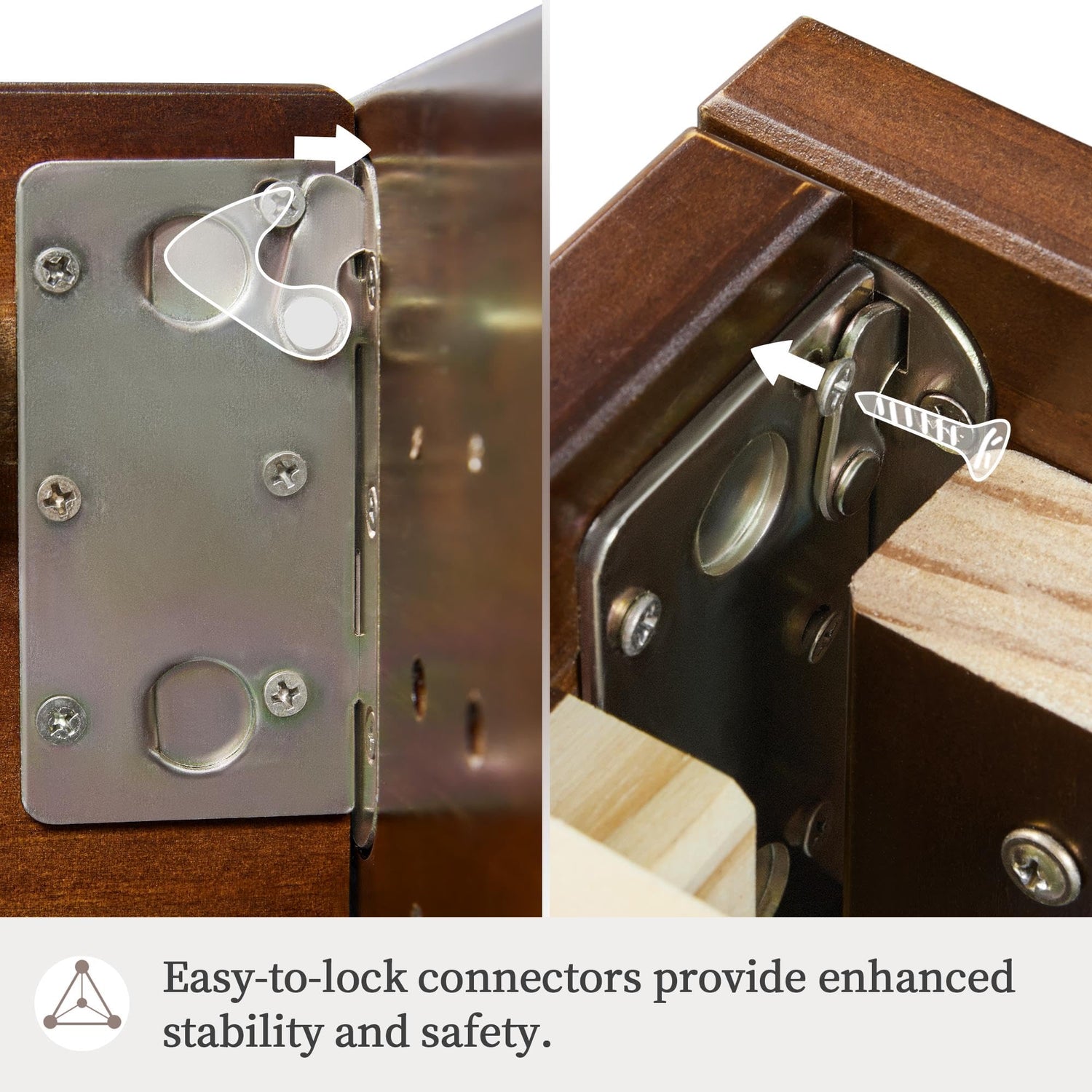 Enhanced stability is further ensured with our grey easy-lock connectors, which come pre-assembled and include additional hooks and screws. This innovative design keeps all parts securely in place, preventing any risk of disassembly during relocation.