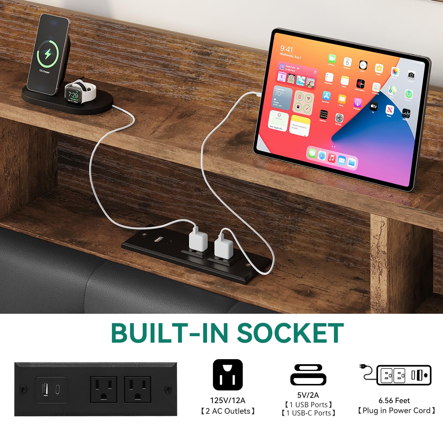 Experience modern living with built-in LED light strips that can be controlled easily through a mobile app or a remote. Accompanying the stunning design is a practical charging station that includes two AC outlets, one USB port, and one Type C port. Stay connected while keeping your space organised—charge your smartphone, headphones, and other electronic devices right from the comfort of your bed.