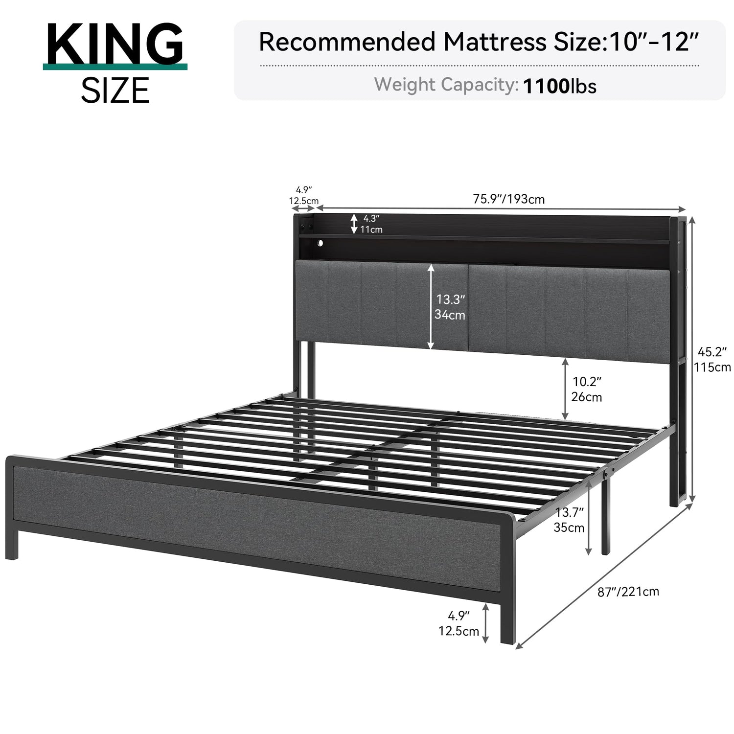 - Ultimate Storage Solution: Say goodbye to clutter with this king size bed frame that features a storage headboard and ample under-bed storage space; This king bed frame with storage will keep your bedroom tidy and organized, making it a must-have for anyone needing extra space