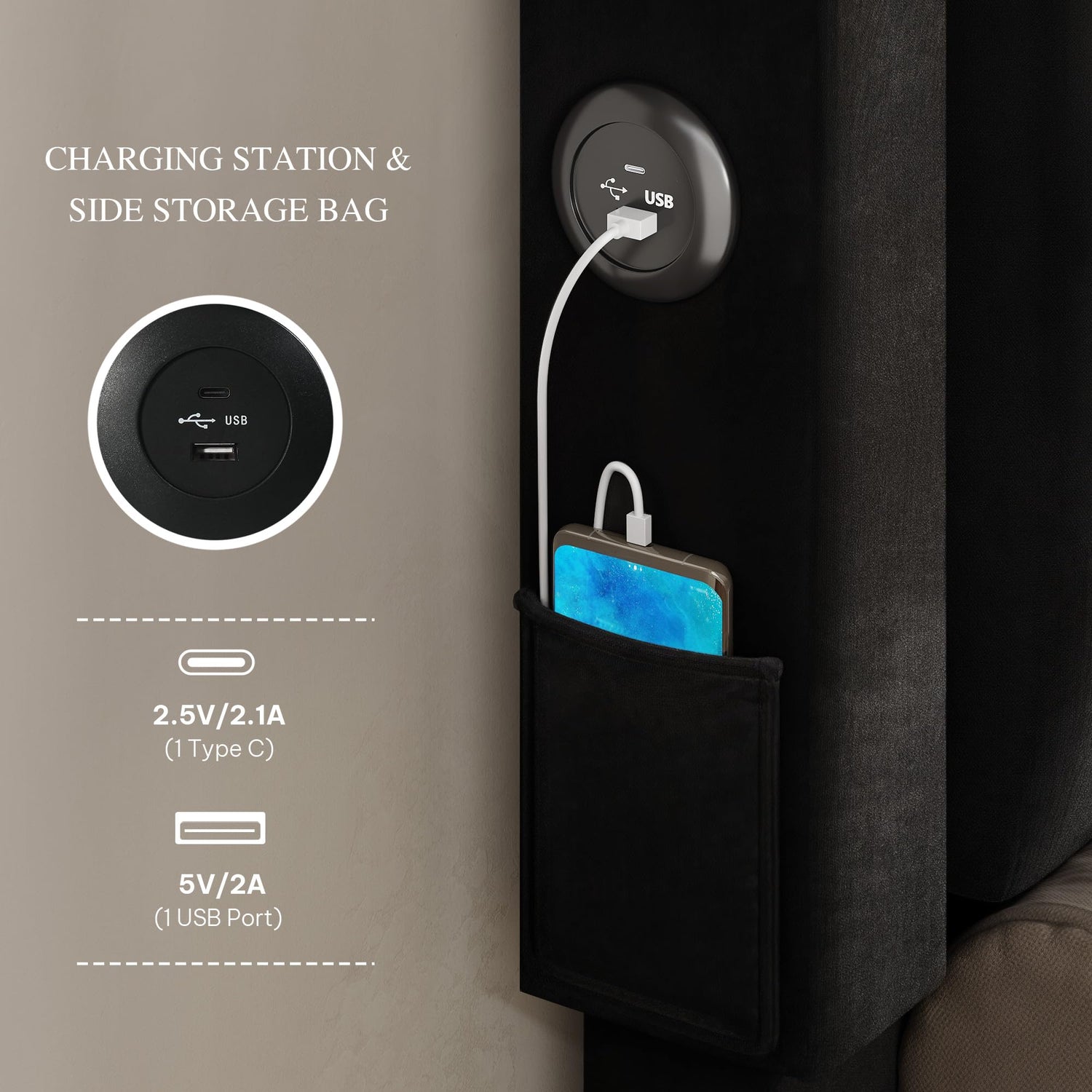 - Convenient USB Ports - The queen size bed frame built-in USB ports (Type-A and Type-C) on two side of the headboard, allowing you to charge various electronic devices within easy reach. No worry about the low battery, this charging station brings you extreme convenience.