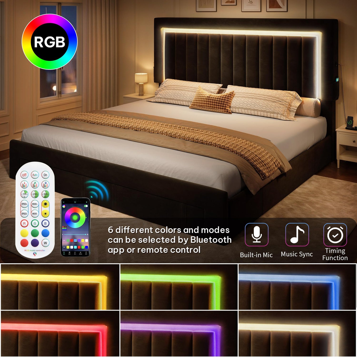 - 4 Sliding Storage Drawers - Our RGB LED bed frame with 4 under-bed storage drawers, you can easily store extra bedding, clothing or any other items to keep your living space tidy. Equipped with rollers, drawers can be smoothly pulled out and pushed in.
