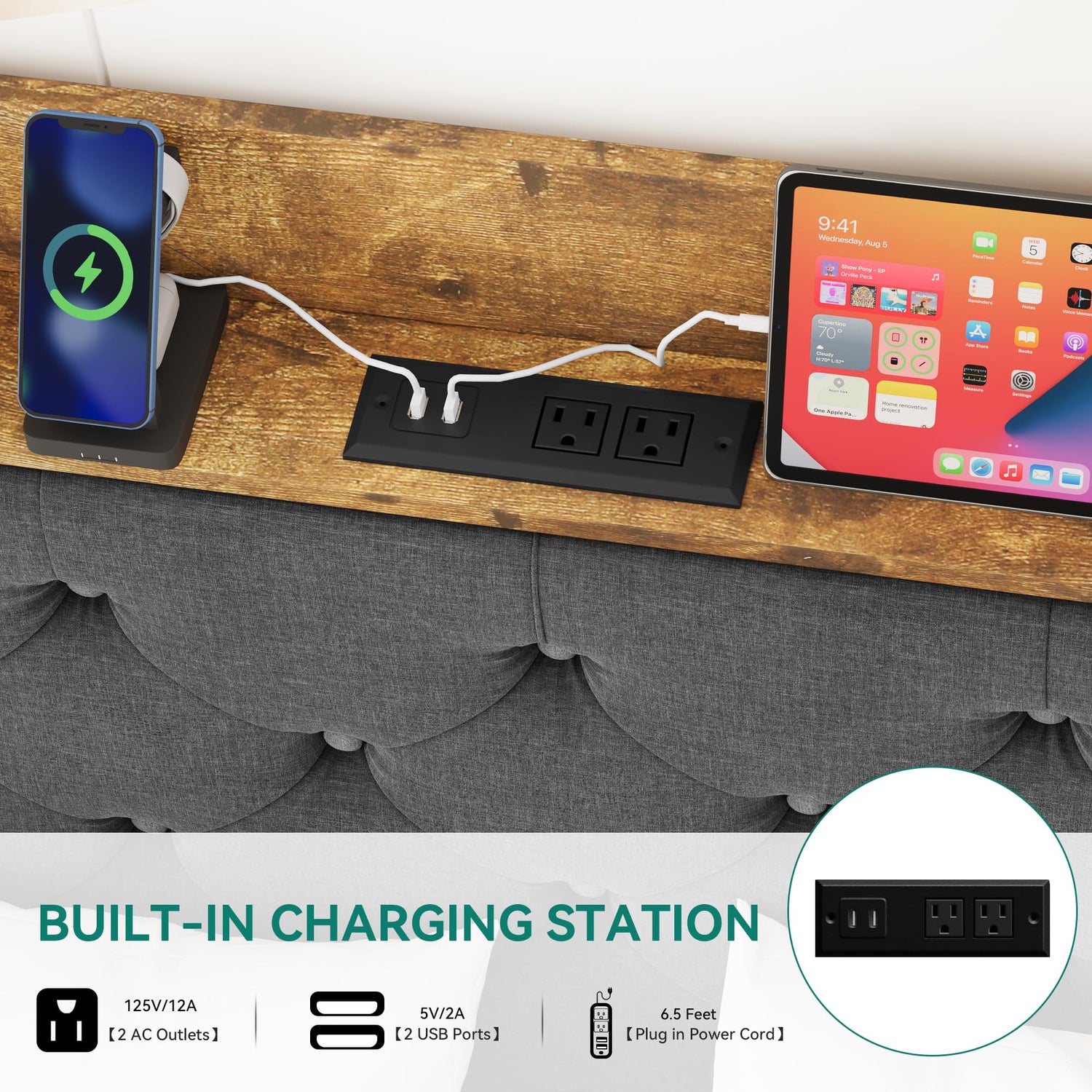 • Handy Storage and Charging: YITAHOME bed frame storage headboard features built-in outlets and USB ports, ideal for charging devices and showcasing alarm clocks or decor