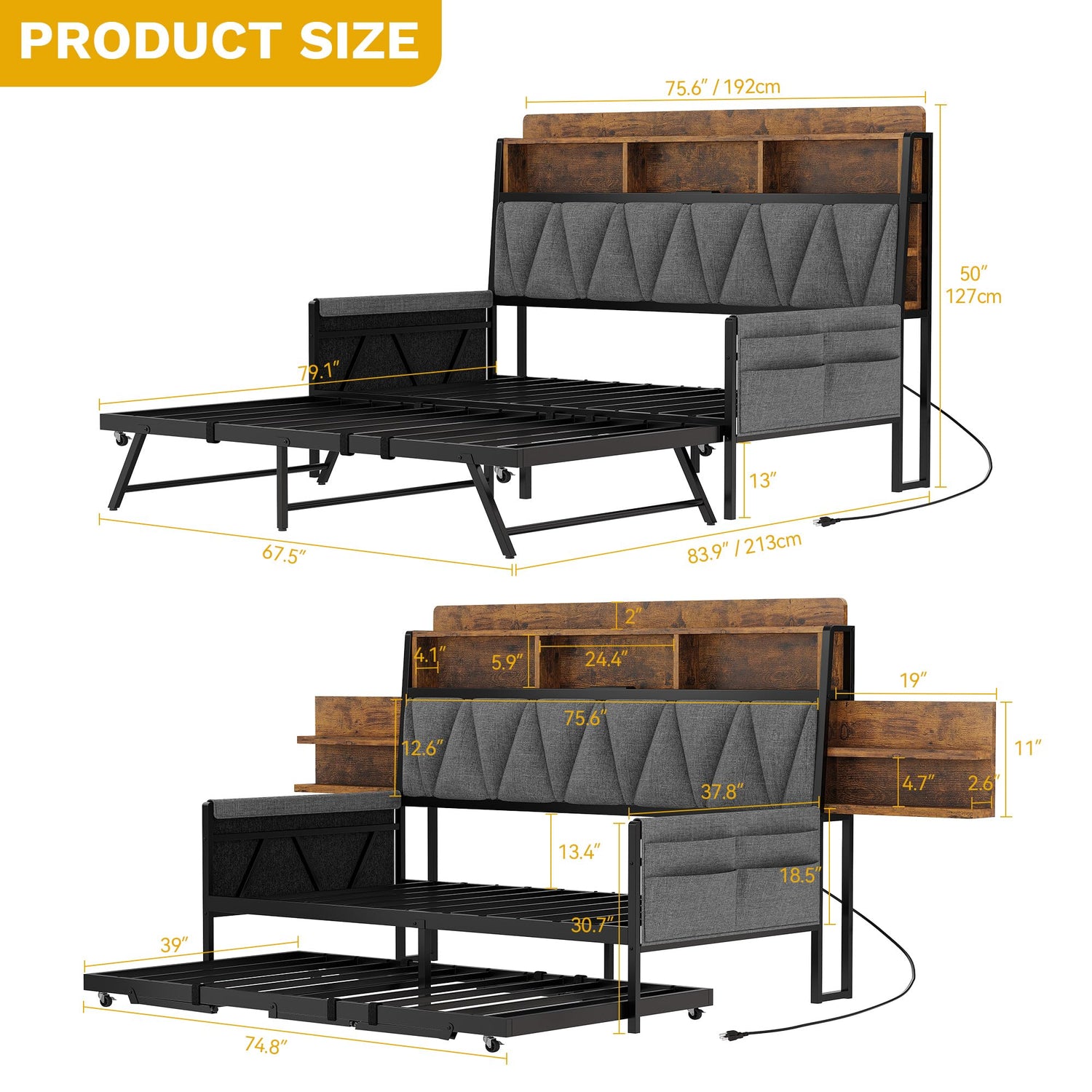 • Multi-functional Use: The twin size daybed with Trundle can be easily transformed from two single beds into a spacious king size bed. During the day, it can be used as a sofa, and at night, it can be used as a bed. This storage bookcase bed frame can easily meet all your needs.