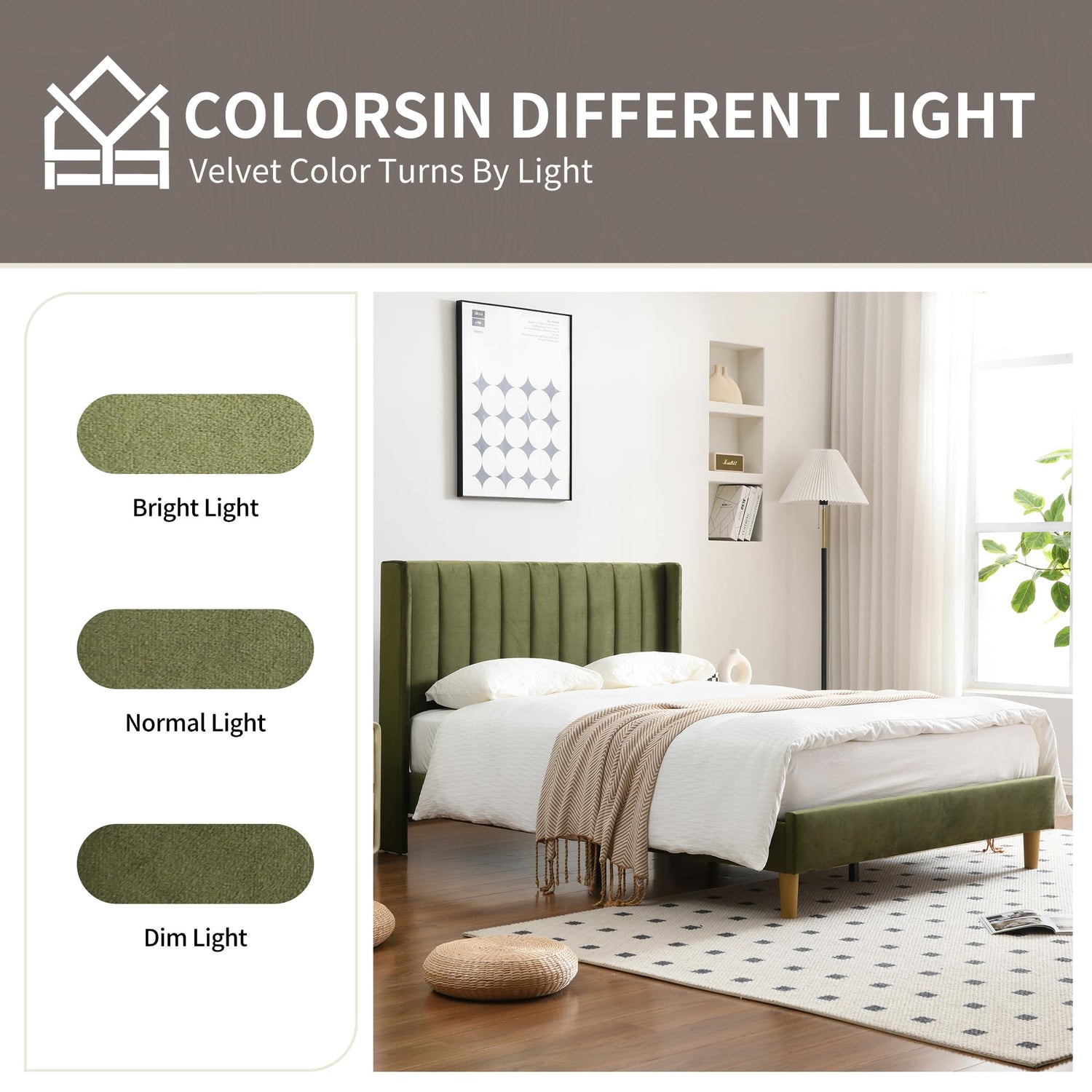 - [SIMPLE AND COZY HEADBOARD] Modern style stylish wingback design with a velvet fabric covered headboard surface brings a chic vibe to your bedroom.
