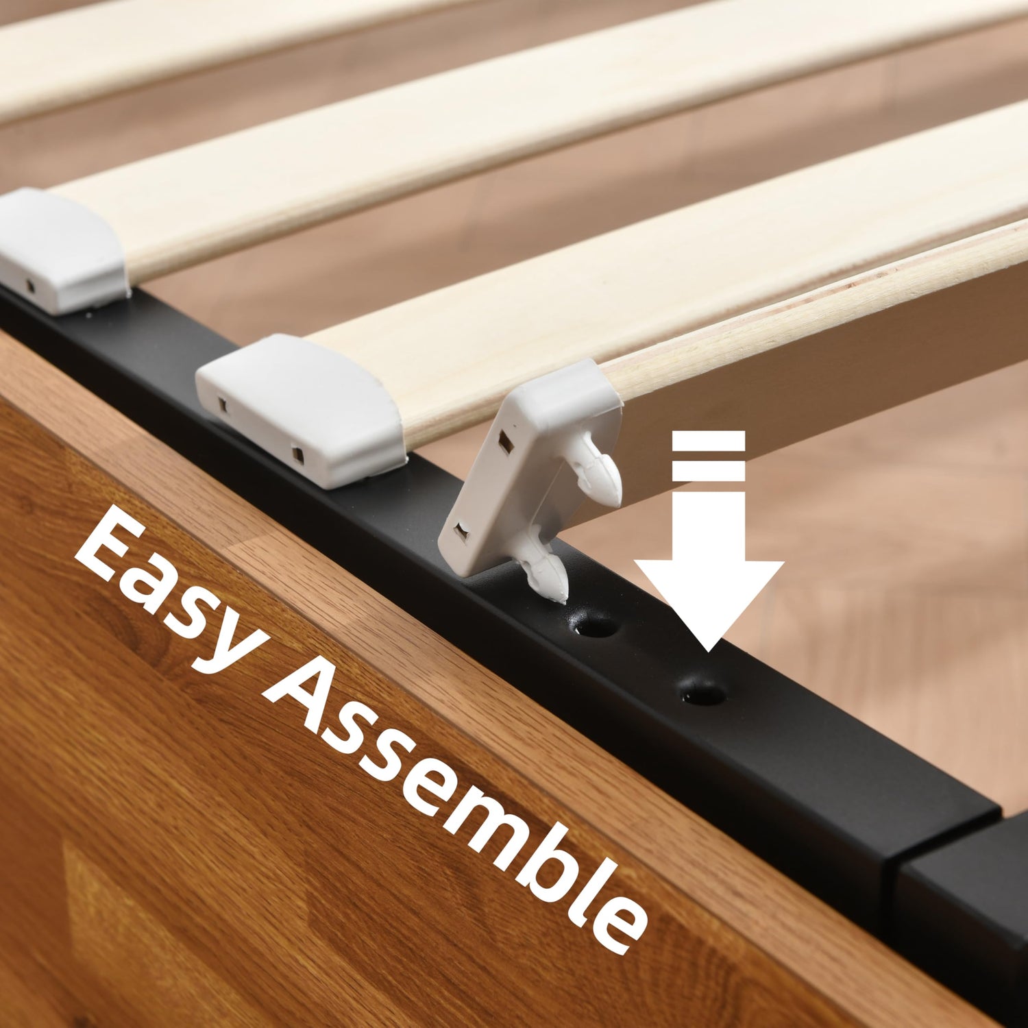 - Solid Wood Slats: The base is equipped with 45 high-quality sprung slats that are highly flexible and can naturally and elastically support the pressure of the body and mattress. They evenly distribute the weight, effectively preventing localized sagging. The rational spacing design promotes air circulation, helping to remove moisture and dissipate heat, extending the lifespan of the mattress and keeping it dry and comfortable all year round