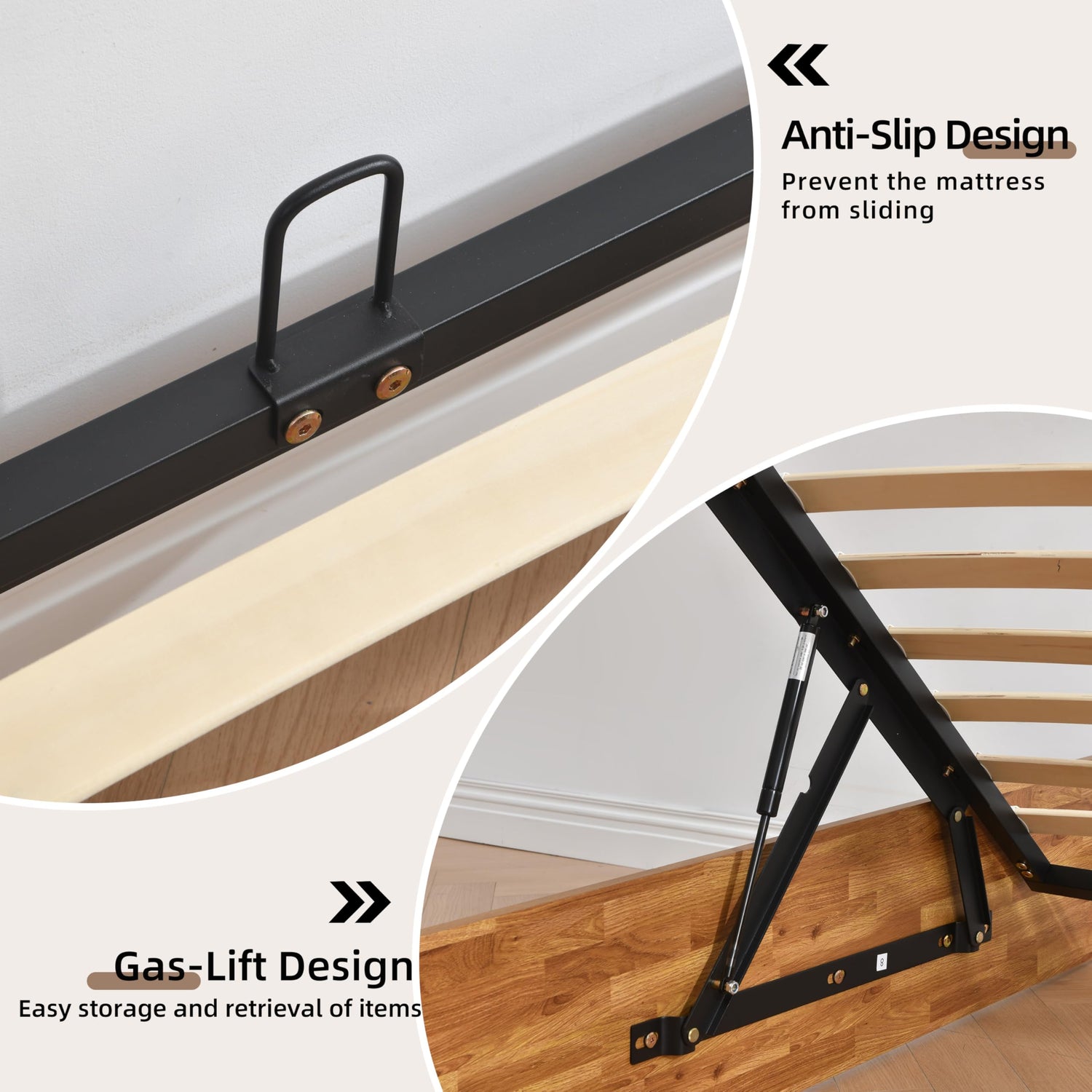 - Effortless Hydraulic Lift System: Featuring high-quality pneumatic hydraulic rods, simply pull gently with one hand to lift the bed board smoothly. This design reduces the effort required by over 70%, making it easy for anyone, including the elderly, to operate. The built-in anti-slip device ensures that the mattress remains stable and does not shift, providing worry-free safety