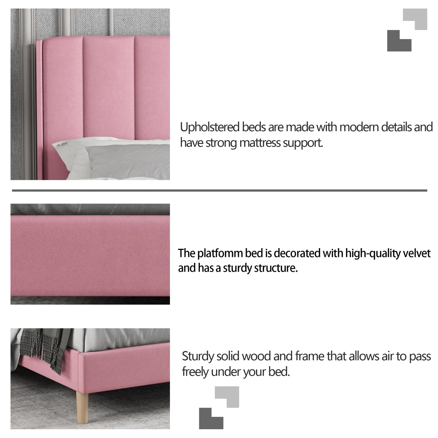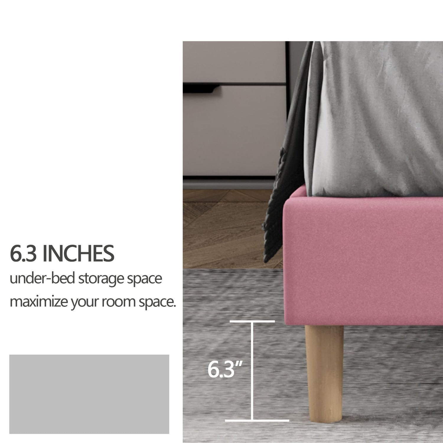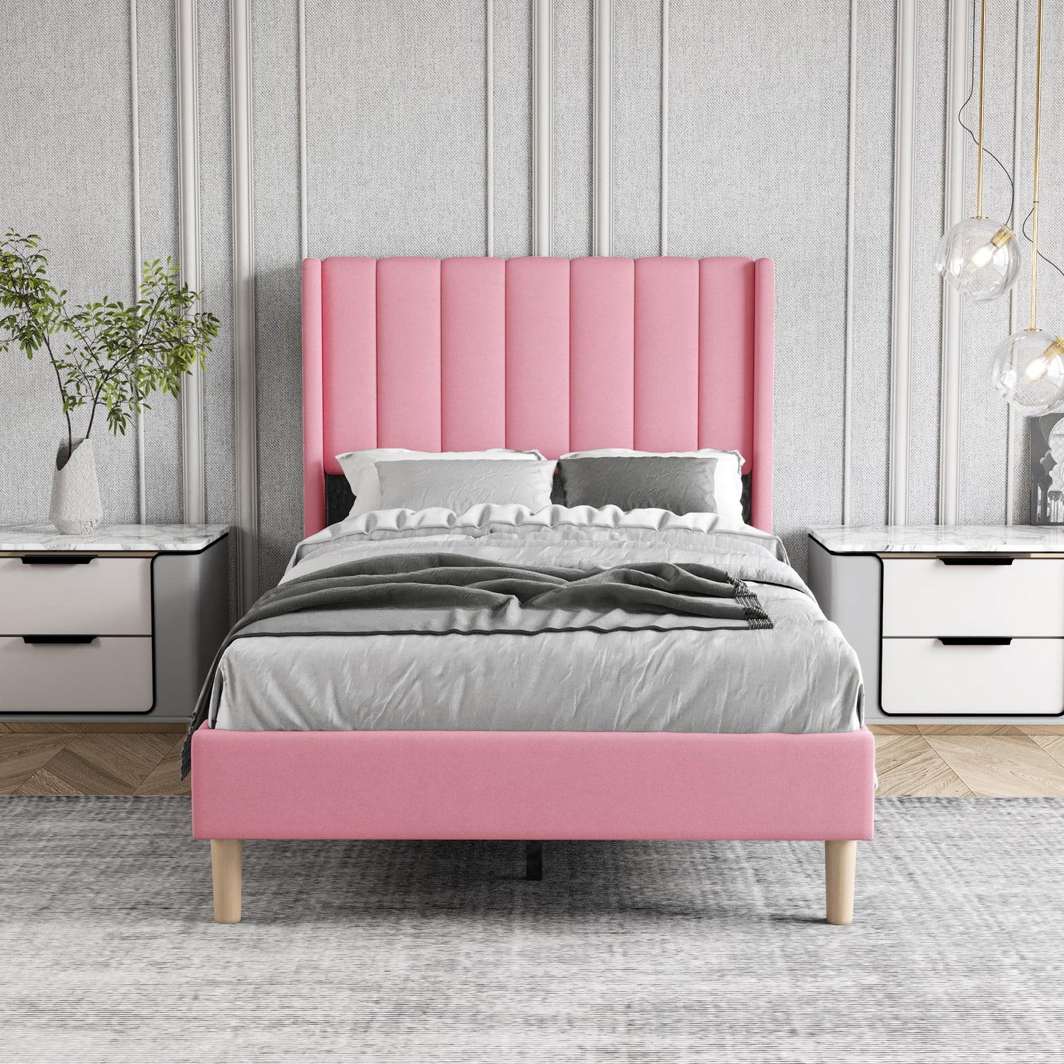 Zoophyter Upholstered Platform Bed Frame Twin Size with Headboard,Mattress Foundation/Strong Wooden Slats Support/No Box Spring Needed/Easy Assembly Pink