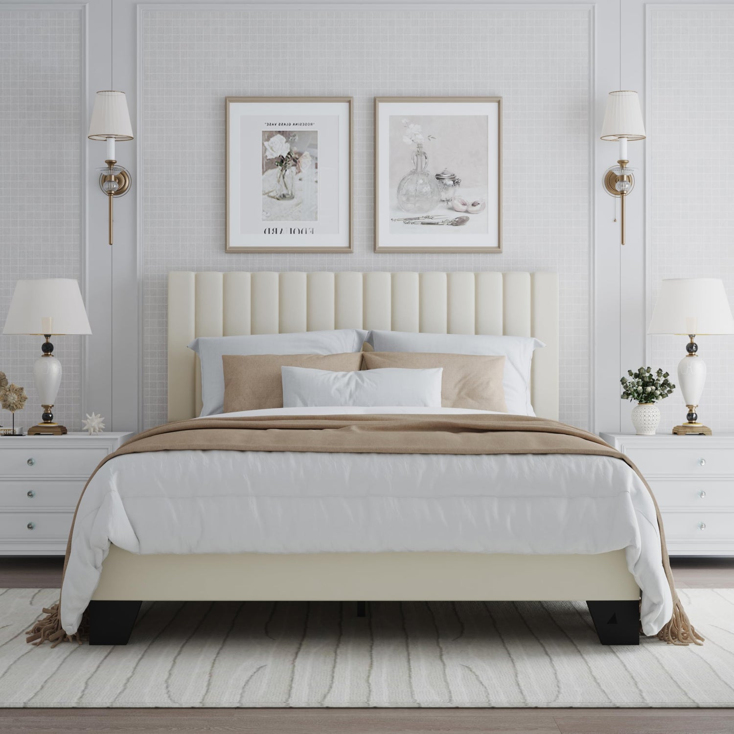 • Elegant Aesthetic: Classic vertical channel tufted headboard in soft velvet adds modern elegance to any bedroom, making this full bed frame a standout centerpiece.