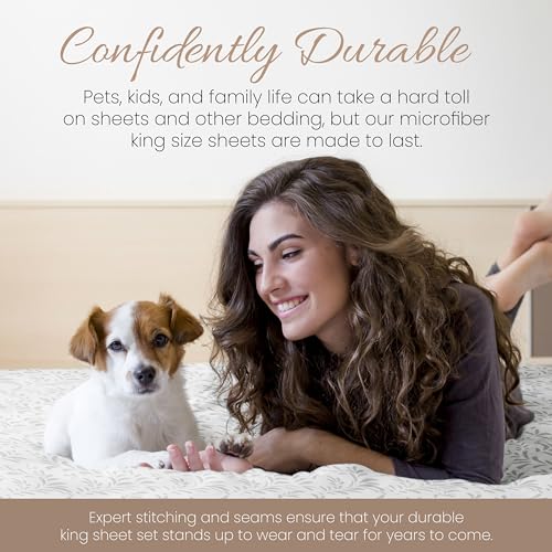 - CONFIDENTLY DURABLE: Pets, kids, and family life can take a hard toll on sheets and other bedding, but our microfiber king size sheets are made to last. Expert stitching and seams ensure that your durable king sheet set stands up to wear and tear for years to come.