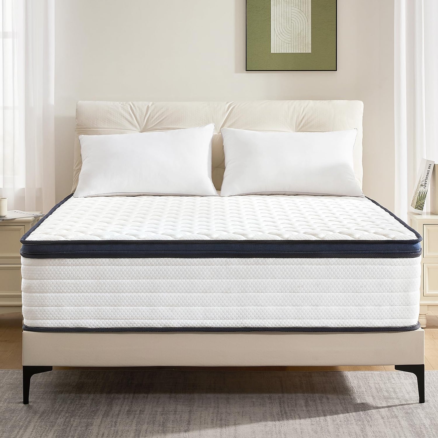 • Medium Firm Support: The king bed mattress boasts a resilient innerspring core that ensures superior support and enduring durability. This core is built for enduring durability, promising years of reliable comfort and a mattress that maintains its shape and support over time.