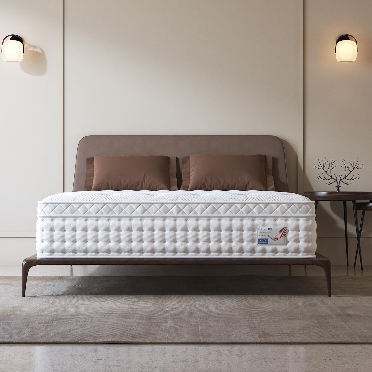 BedStory King Mattress, 14 Inch Deep Sleep Mattress Extra Lumbar & Shoulder Support, Hybrid Mattresses with Gel Memory Foam, Fiberglass Free, No Odor, 365 Night Trial, Forever Warranty