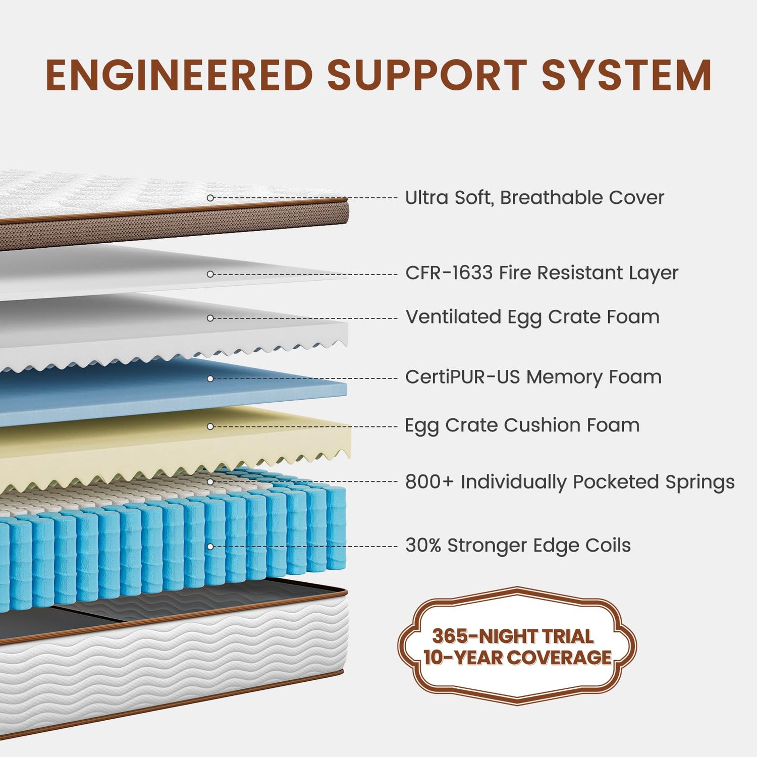 - Premium Motion Isolation - Built with 800+ 2.0mm reinforced steel coils, each individually wrapped to reduce motion transfer, ensuring you won’t feel your partner’s movements. Enjoy a more peaceful, uninterrupted sleep