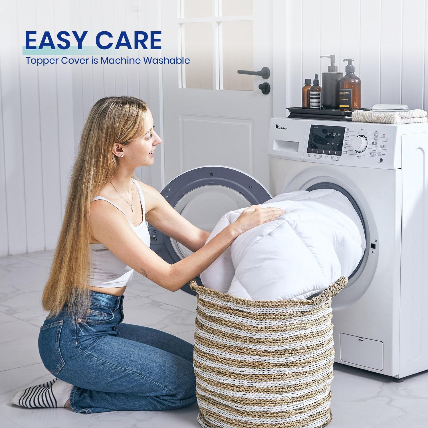 - MACHINE WASHABLE, EASY TO CARE: Our mattress topper is machine washable, wash separately on cold water, gentle cycle, tumble dry on low or dry naturally, do not dry clean, warm iron when needed.