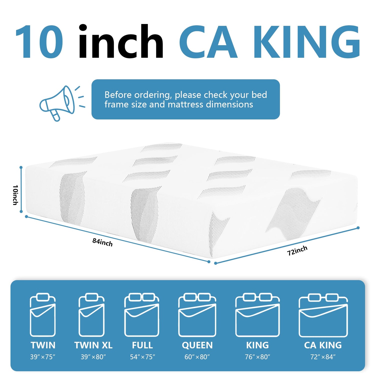 California King Mattress, 10 Inch Gel Memory Foam Cal King Mattress, Removable Washable Cover, Mattresses in a Box, Medium Firm Pressure Relief & Upgraded Support, Motion Isolation, CertiPUR-US