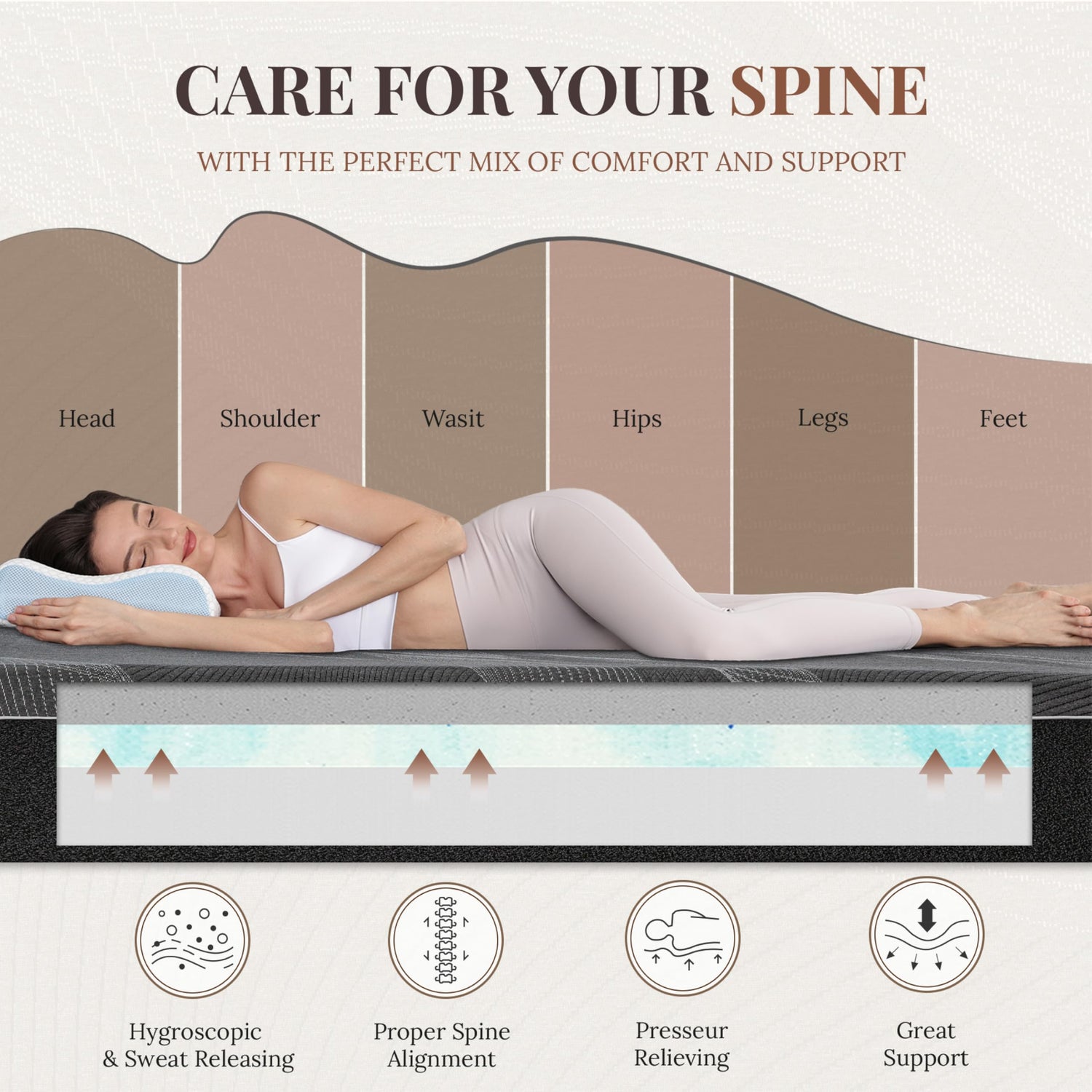 • Refreshing and Clean Sleep: Made with Bamboo Charcoal Gel Memory Foam, this mattress creates a cool, odor-free, and hygienic sleep environment, ensuring fresh and comfortable rest every night