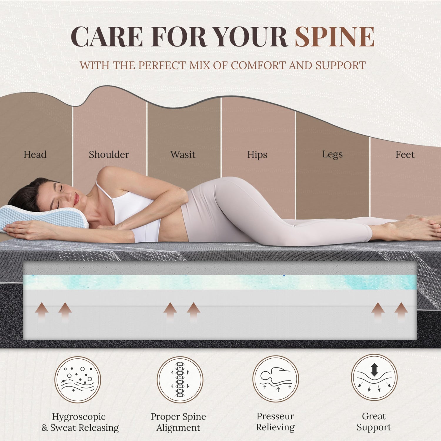 • Refreshing and Clean Sleep: Made with Bamboo Charcoal Gel Memory Foam, this mattress creates a cool, odor-free, and hygienic sleep environment, ensuring fresh and comfortable rest every night