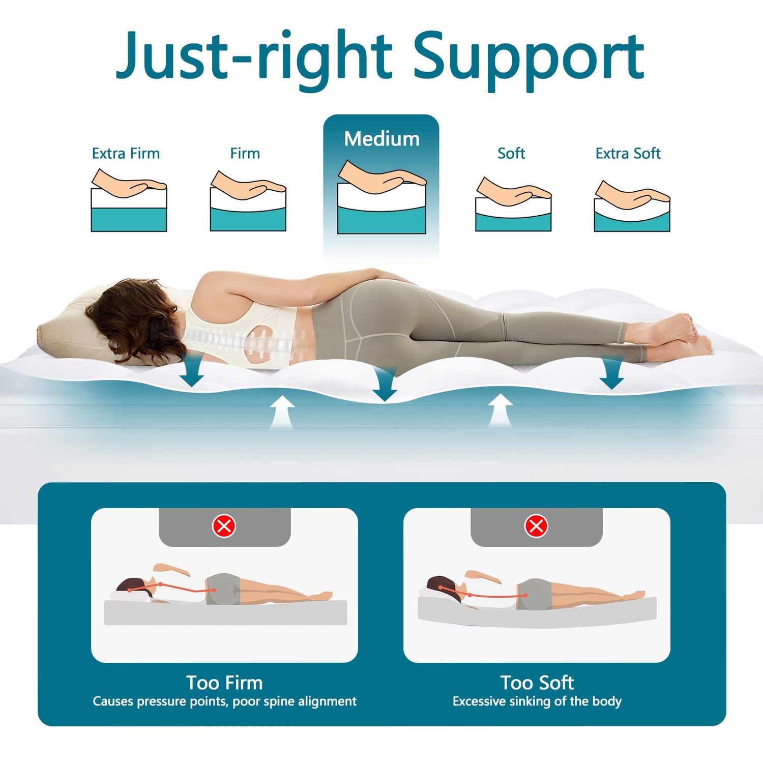 - 2.【Optimum Thickness for Support】: The pillow top mattress topper offers optimum comfort, neither too thick nor thin, achieves a smart balance between softness and cushioning. Gently cushion pressure points like your hip, back and shoulder to help relieve back pain. Provide a ergonomic support and comfort for your sleep.