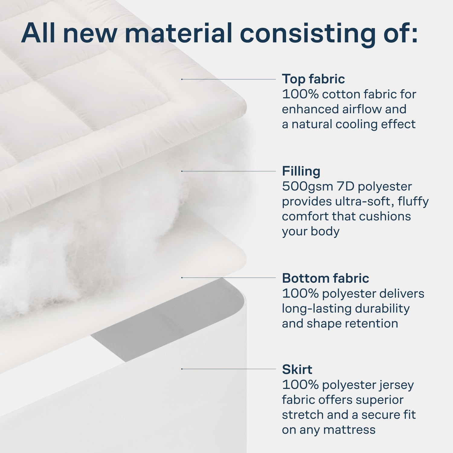 Cloud-Like King Mattress Topper - 100% Cotton Top Mattress Pad for Back Pain Relief - Breathable & Naturally Cooling for Hot Sleepers
