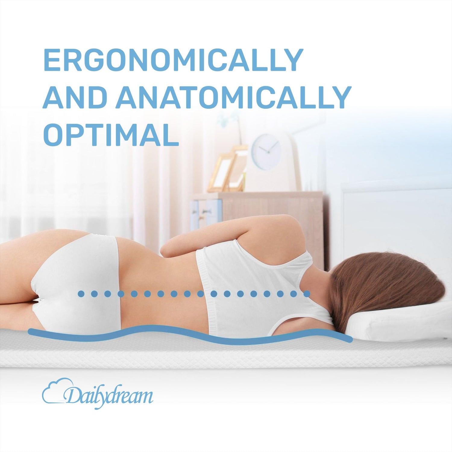 - ☁ THE VISCOELASTIC FOAM: The viscoelastic foam is especially suitable for people who tend to prefer a softer sleeping surface. Our toppers provide unique pressure relief, and with the distribution of pressure, the body is positioned in an anatomically and ergonomically optimal position. This promotes better circulation and thus a deep and restful sleep.