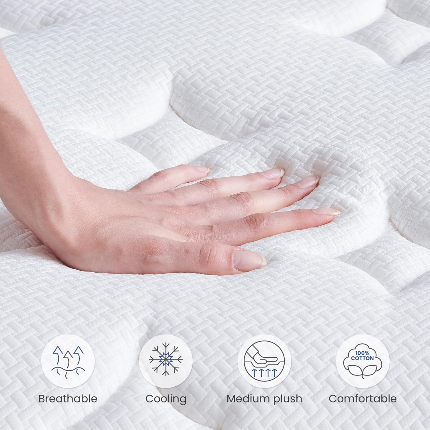 - Breathable and Cooling: This hybrid mattress is designed with gel memory foam that is ventilated and breathable, indIvidual pocket spring enhence air circulation. The woven mesh design and the high-quality knit fabric provides outstanding breathability, keeping you dry and comfortable, bring more cooling to you