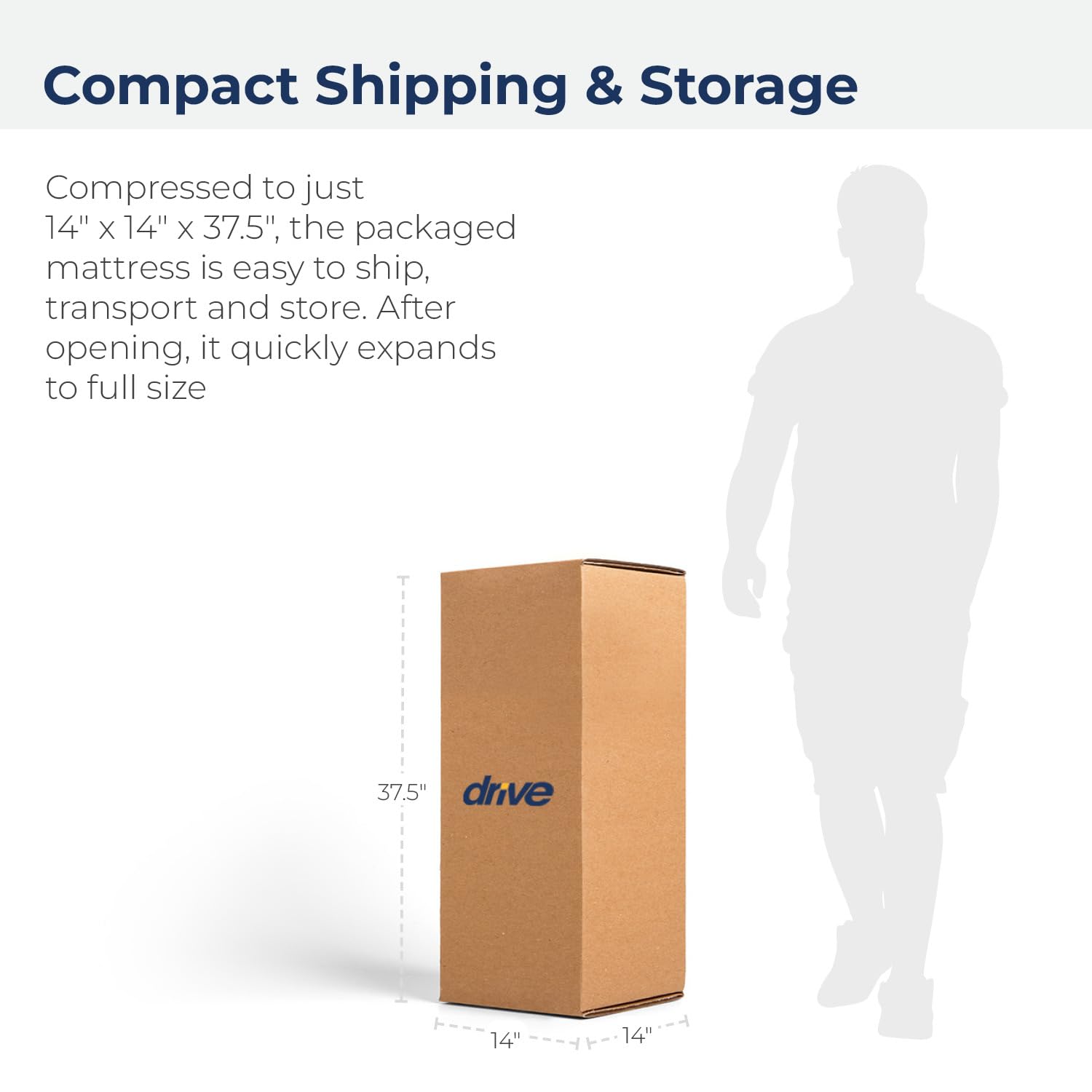 Details: The Drive Medical Decompressing Foam Mattress helps you sleep well in your hospital bed or regular bed. Its inner core is encased in a fire retardant barrier, meeting regulation 16 CFR 1633. A non-slip bottom and 4 corner straps keep the mattress securely in place. The design is compact and the two carry handles on the side make lifting and placement easier. Backed by a one-year limited warranty from Drive Medical, a leading brand of medical beds, bath safety products, and other medical goods for more than 20 years, you can purchase with confidence.