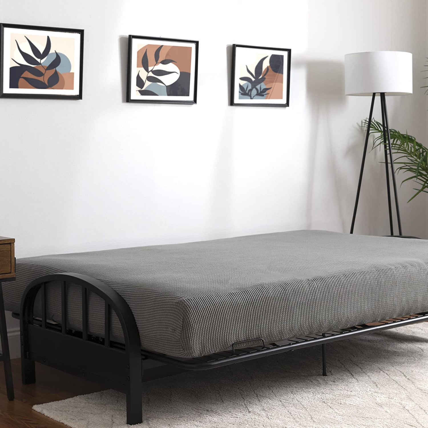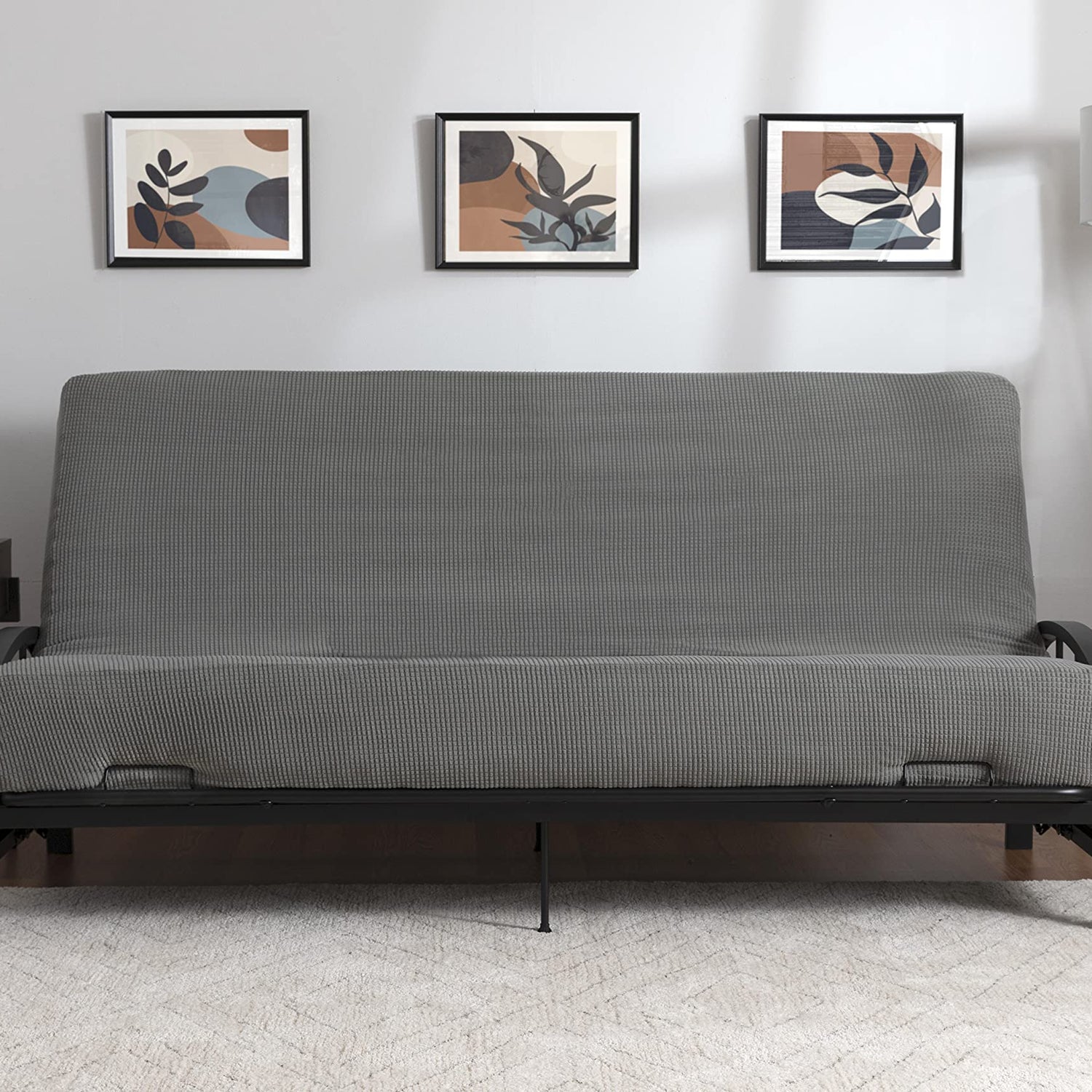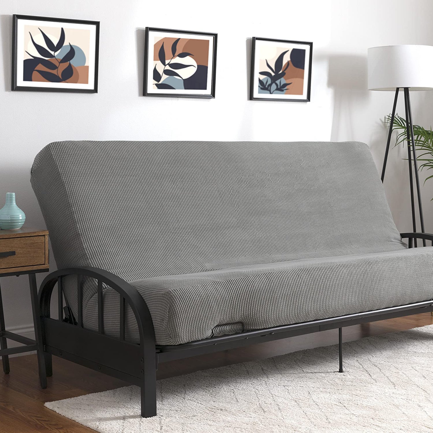 Details: A popular multi-purpose futon engineered to release a not too soft and not too firm feel. Generous amounts of highly resilient foam and polyester are utilized to create this futon that resists change in support after many years of use; guaranteed! High-Tech begins here when HD Foam caters to the elite Characteristics: Comfort Level: Luxurious Firm Durability: 10-12+ years, designed to resist changes in support for years Thickness: A TRUE 8 (14 of overstuffed goods compressed to perform inside an 8 border) Weight: per full size: 45 pounds Popularity: #2 on the charts Home Style Use: Sofa and Bed Frame Recommendations: can be used on a bi-fold frame or a platform bed style frame The Otis Grip Strips are highly recommended - 1 pair Overcover: 8 box recommended Cost: mid range Construction: 7 1/2 oz twill fabric provides proper strength to hold the tuft in the mattress. 9 of minimum 2.0 pound density foam provides the ability to keep the mattress looking and feeling good. A double layer of polyester top and bottom gives the mattress a clean finished look. Machine tufting reduces the thickness of the mattress to lock in its good look and feel. The tape edge closing process insures proper fit and finish of the mattress cover.