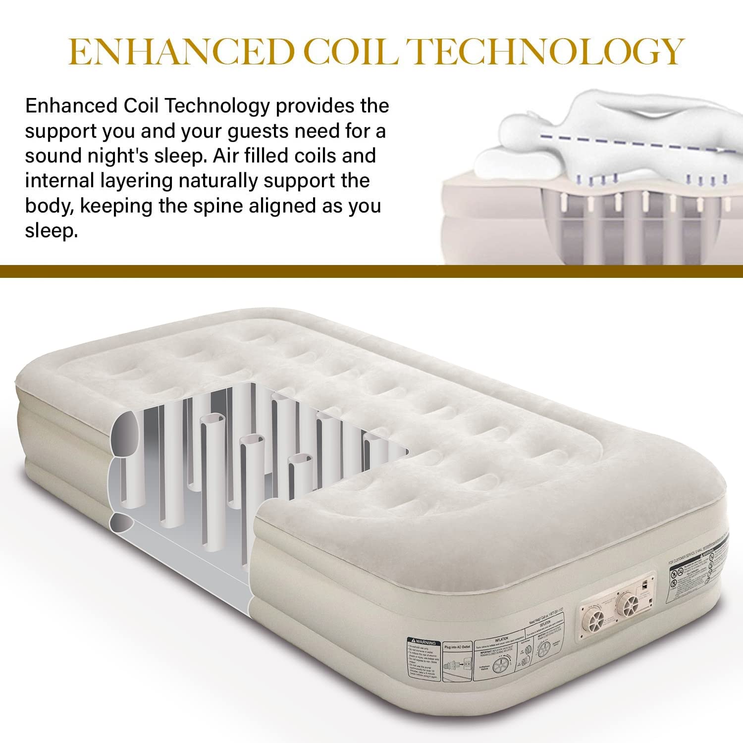 Details: Comfort has never looked or felt this good! The King Koil TWIN air mattress is an aspirational air bed featuring the finer elements of luxury air mattresses. Built with time-tested materials, it puts consumers one step closer to the premier sleep experiences of the world. Utilizing the latest in air mattress blow up bed technologies with a built-in pump and a coil-beam construction, it offers firm comfort levels for spinal support and good sleeping posture for an excellent night's sleep. King Koil makes some of the most beautiful air mattresses and blow up beds in the world which are featured at the best hotels worldwide. For Proper Night Time Sleeping Posture, King Koil is the only mattress manufacturer that is endorsed by the International Chiropractors Association to help promote proper spinal alignment and a healthier night's sleep!
