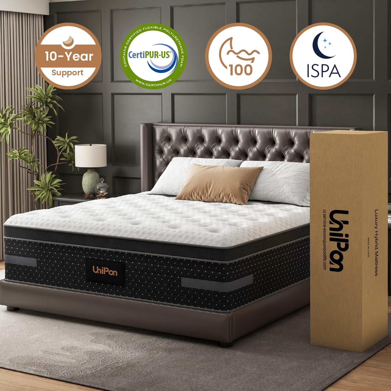 • Pain Relief Hybrid Mattress – the hybrid mattresses with a soft Euro top, body-contouring foam layers, and individually pocket spring support, the UniPon hybrid mattresses offers a balanced plush feel that’s perfect for couples and solo sleepers alike.