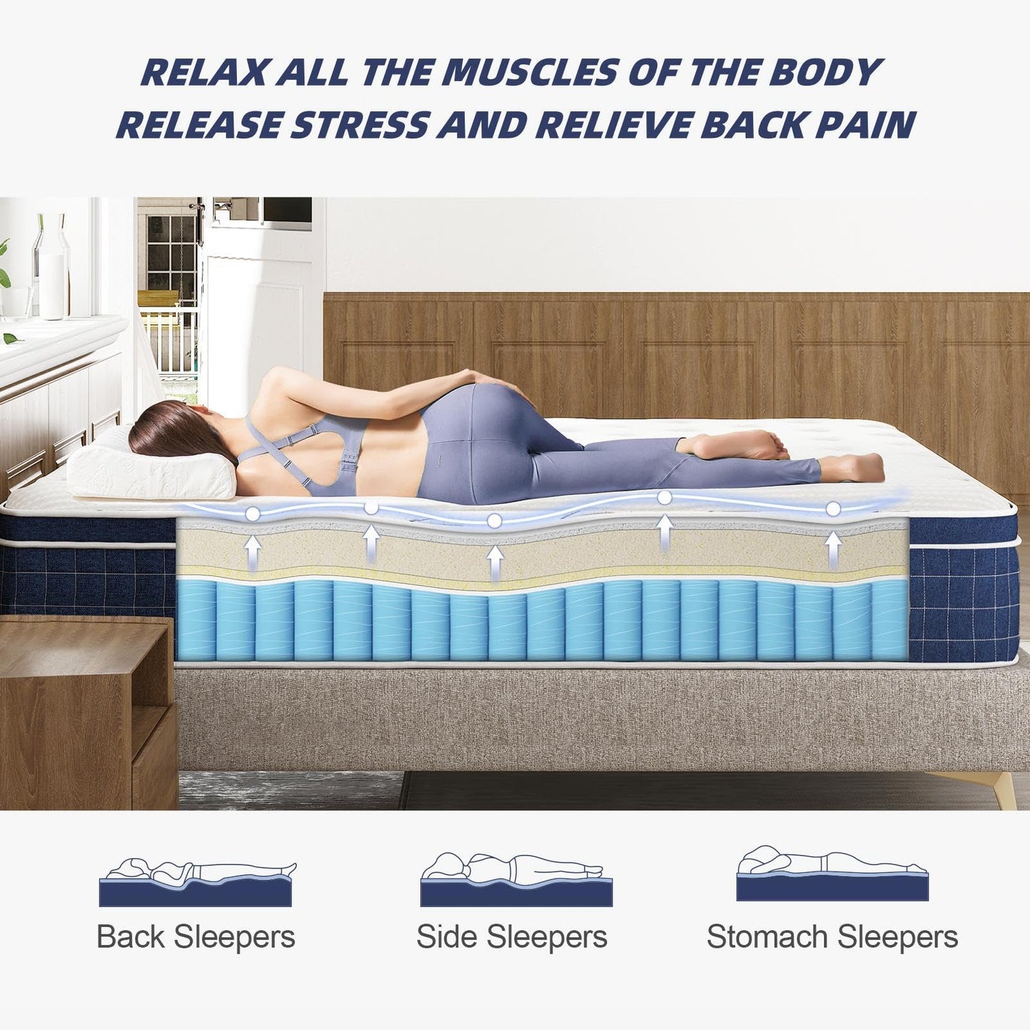 - 【Enjoy A Better Night'S Sleep】King Mattress consists of independent pocket springs and multiple layers of High-Quality memory foam, providing you with the best support and comfort, effectively relieving pressure and releasing fatigue without aches and pains, allowing you to have the best comfortable sleep experience.