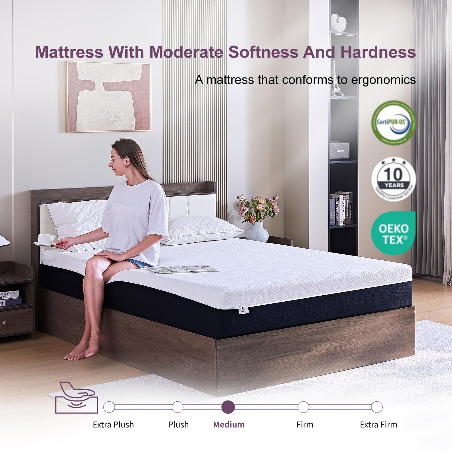 • LUXURIOUS CONSTRUCTION:Crafted with dual-layer premium foam technology, our mattress combines CertiPUR-US certified high-density support foam with cooling gel-infused memory foam for adaptive body contouring. This fusion delivers lasting durability, personalized pressure relief, and cloud-like comfort tailored to your unique sleep posture.