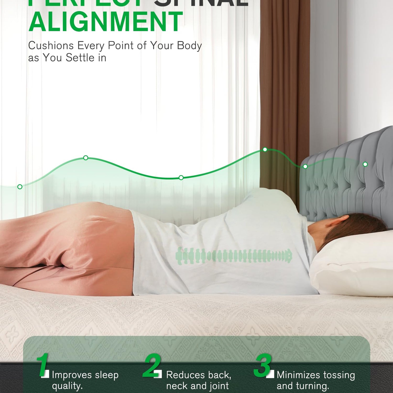 - 【Designed for Balanced Rest】 Expertly engineered, this gel memory foam queen mattress delivers full-body support, relieves pressure points, and promotes healthy spinal alignment. It reduces back, neck, and joint discomfort while minimizing motion for a calm, uninterrupted sleep that leaves you feeling refreshed.