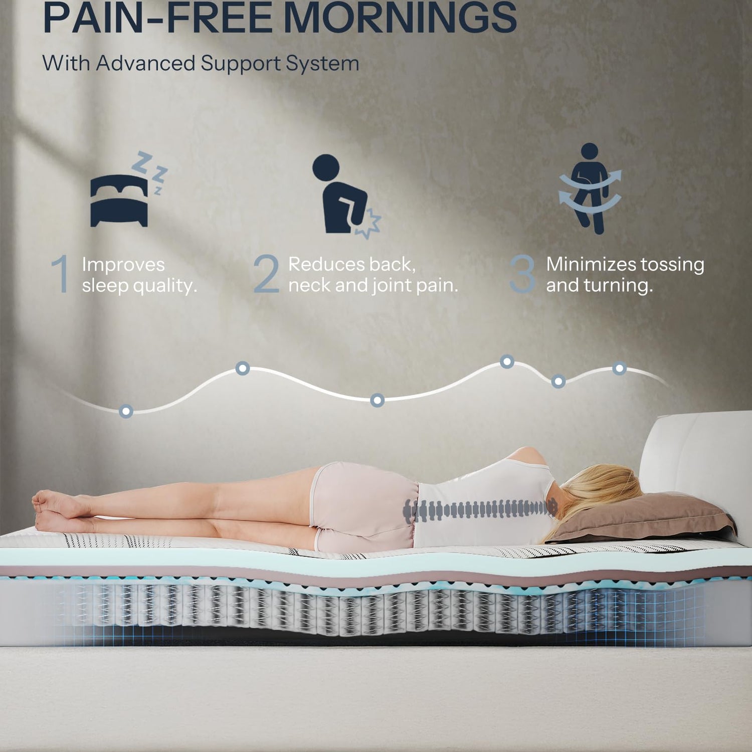 - Exceptional Support with Enhanced Edge: The independently wrapped coil system provides exceptional support while minimizing motion transfer, allowing for undisturbed sleep even with a partner in bed. The foam encasing around the coils enhances edge support, preventing sagging and giving you more usable space, so you can sit or lie on the edge with confidence. Additionally, this system of the twin size mattress promotes proper spinal alignment, helping to reduce discomfort and ensure a restful night’s sleep, while being suitable for all sleeping positions.
