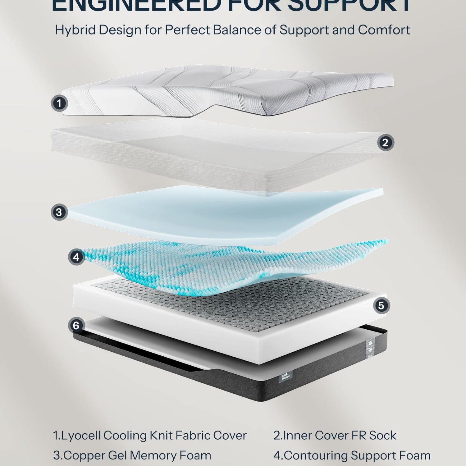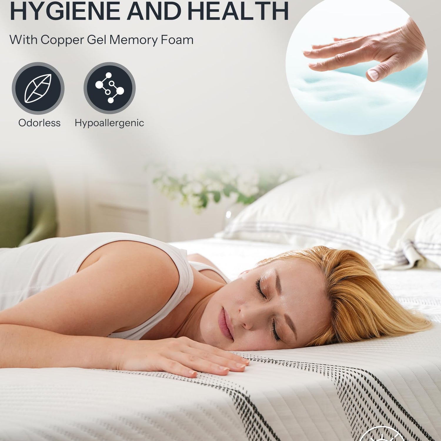 - Enhances Sleep Hygiene and Health: Featuring a layer of copper gel memory foam that contours to your body’s shape, this twin bed mattress effectively relieves pressure points, while the natural properties of copper provide hypoallergenic benefits, helping to reduce allergens and neutralize odors for enhanced sleep hygiene.