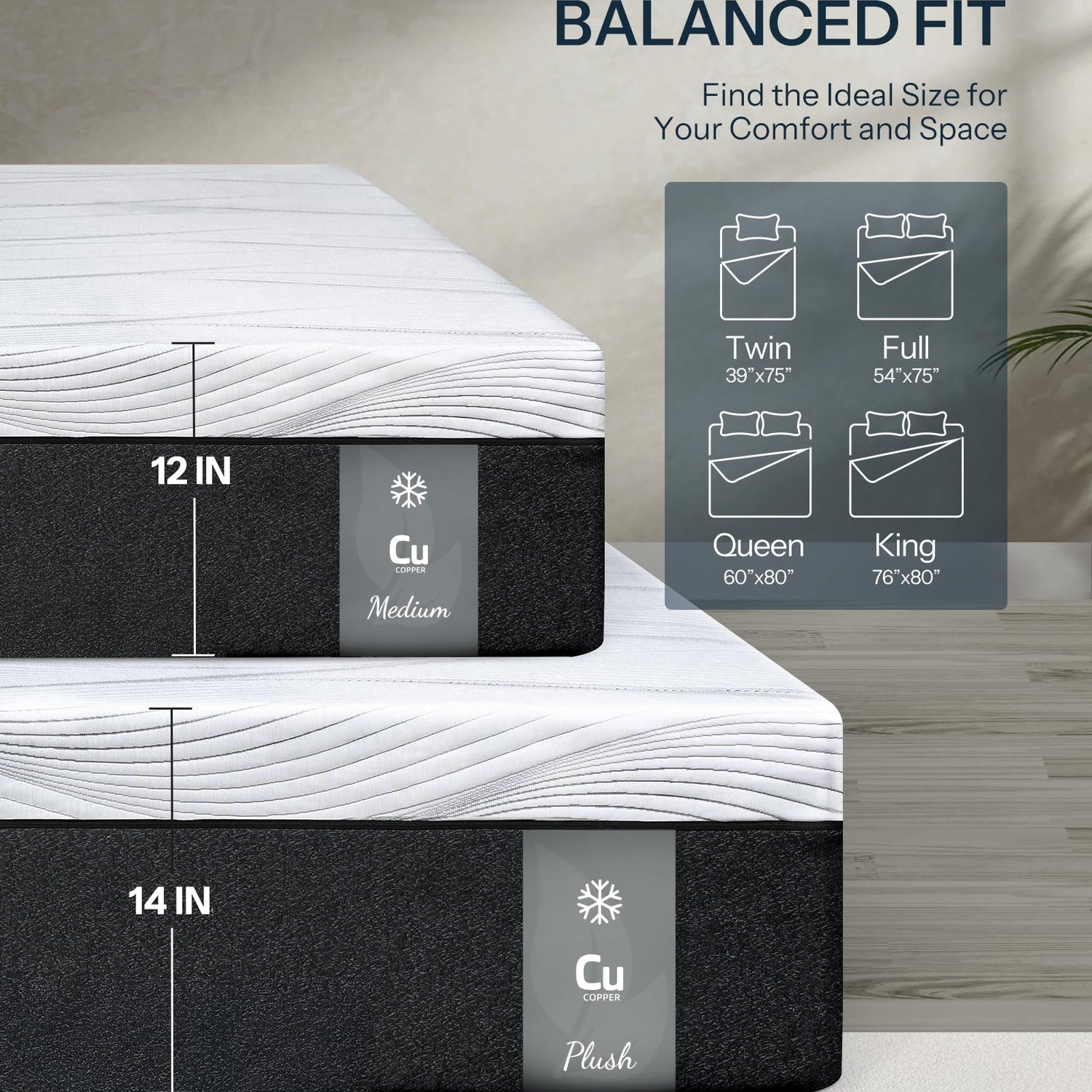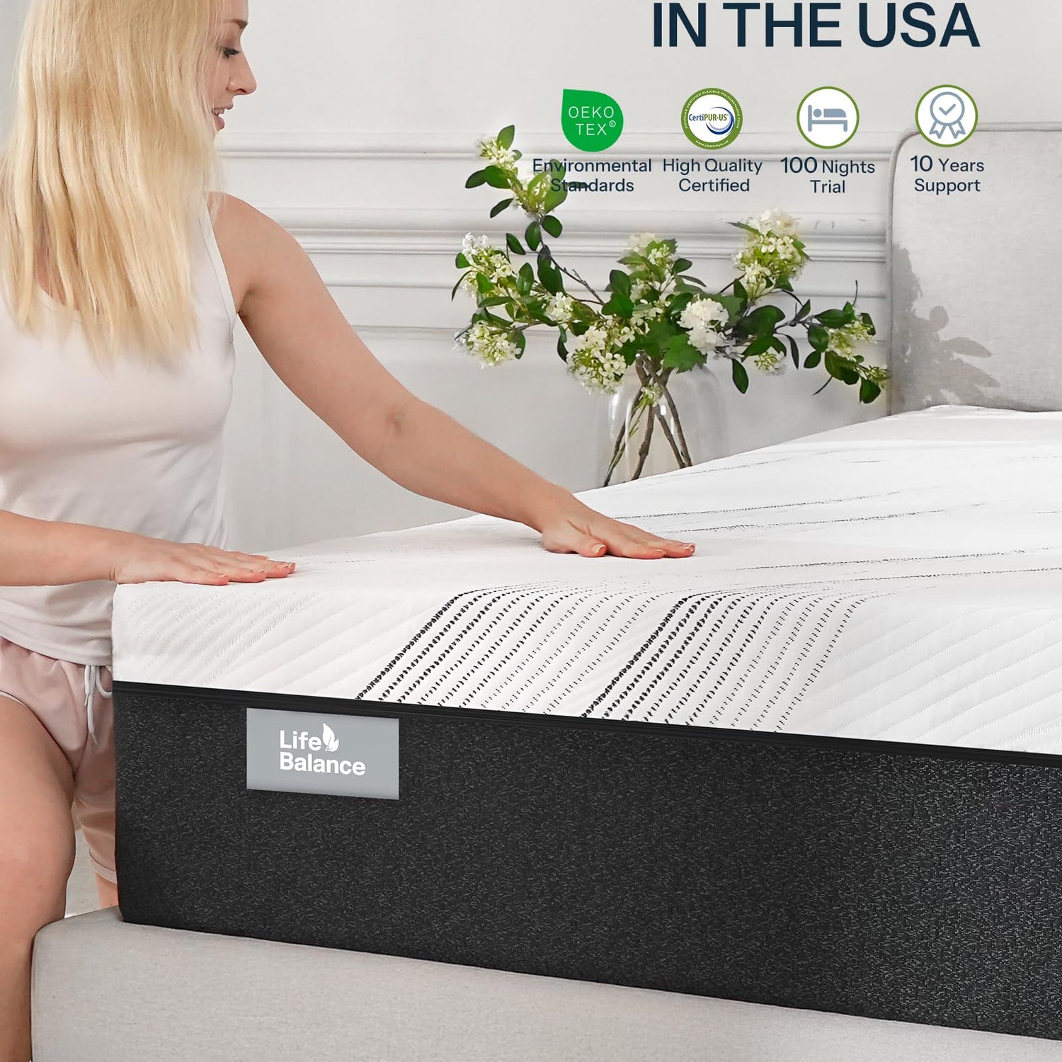 Life Balance Hybrid Twin Mattress 12 Inch, Made in USA, Medium, Individual Pocket Coils & Copper Gel Memory Foam, Hypoallergenic & Odorless, Motion Isolation & Pressure Relief, Mattress in a Box