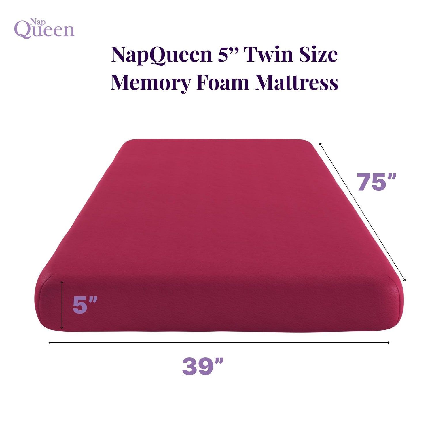 NapQueen 5 Inch Twin Memory Foam Mattress, Medium Feel, CertiPUR-US Certified, Bed in a Box, Breathable Soft Fabric Cover, Pink