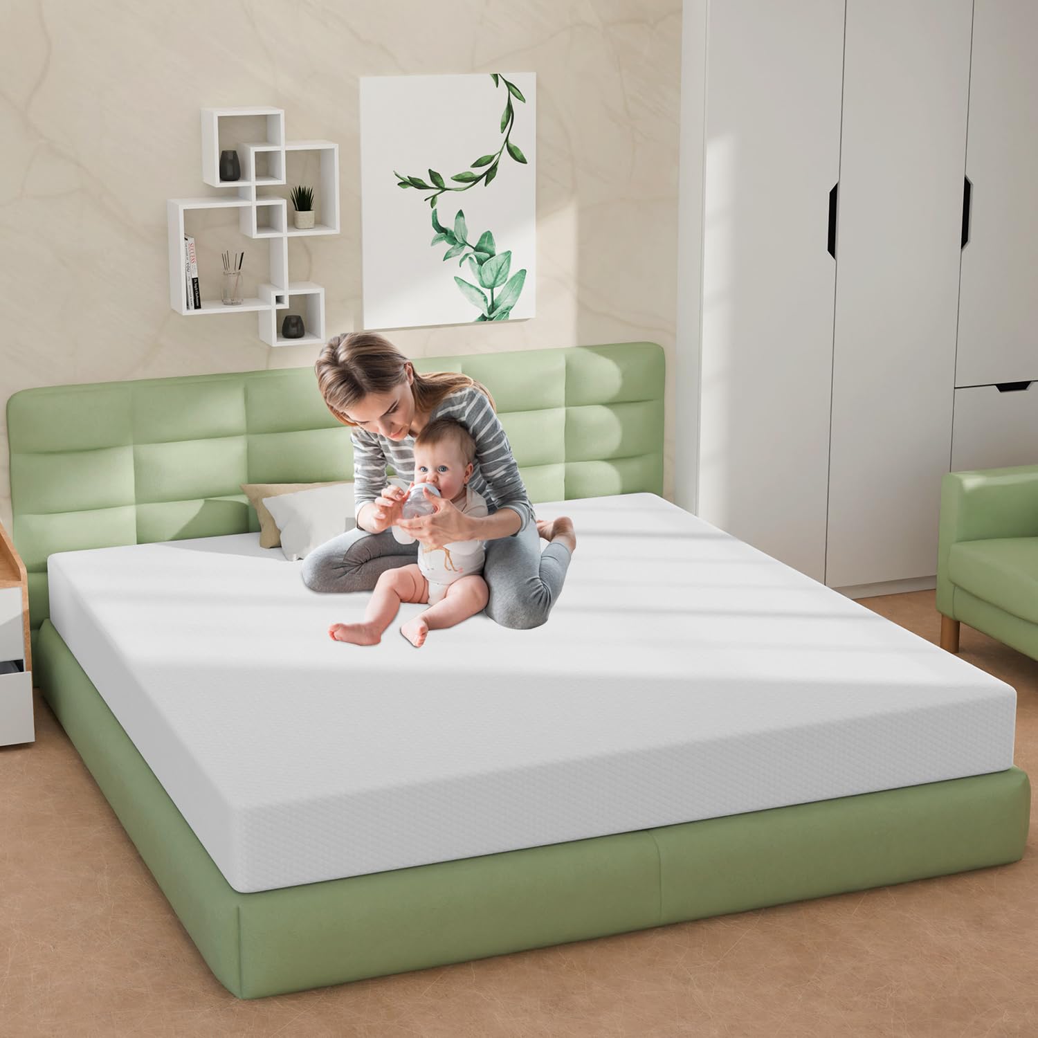 - PERFECT COMBINATION: A mattress king size made of gel memory foam and comfort foam with higher quality and better elasticity, highly conforming to the body and autonomously conforming to body curves and various sleeping positions.
