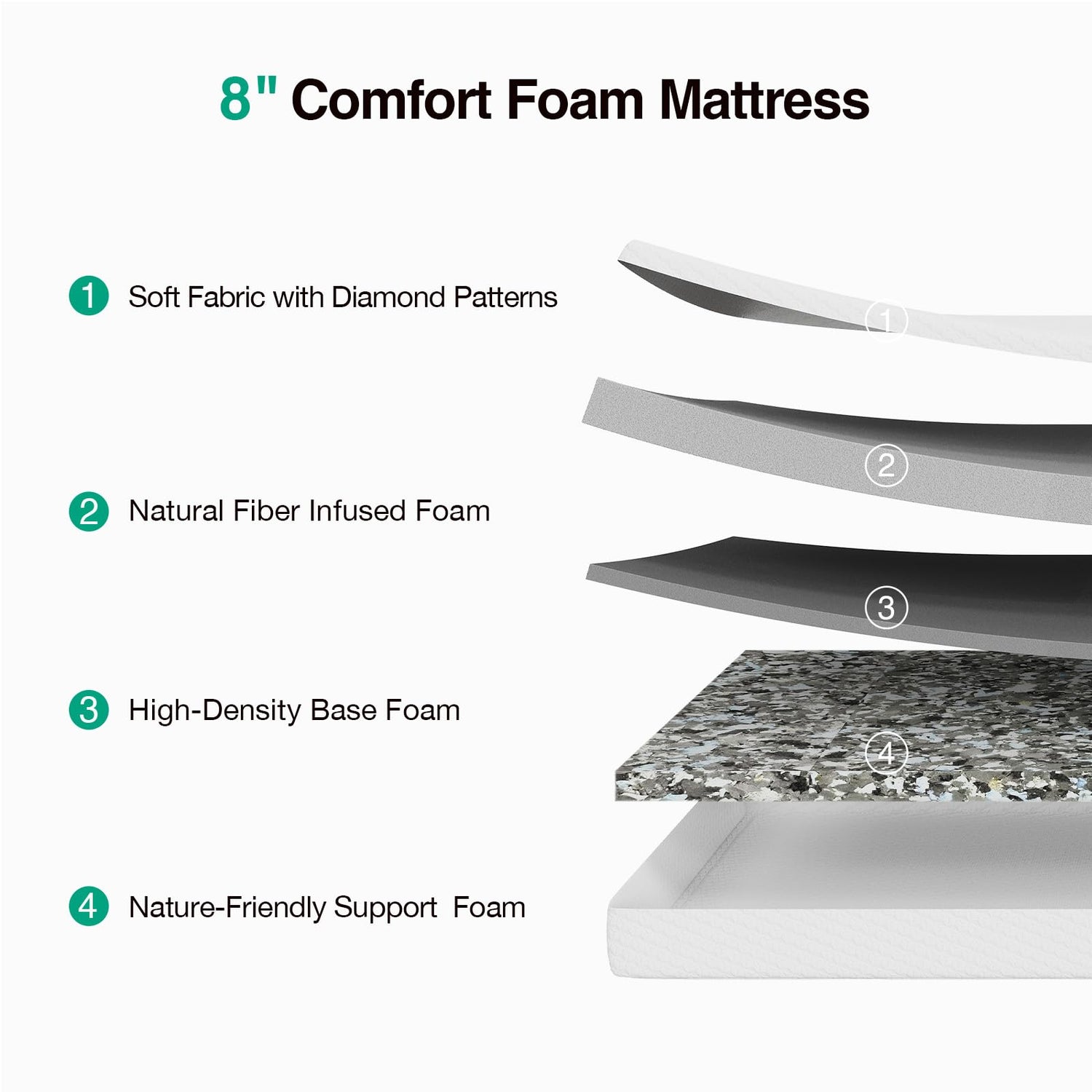 - 【Stress-Relieving System】 The mattress full combines a 3-layer foam system for balanced comfort: a 2" moisture-wicking comfort foam, a 3" egg crate airflow foam, & 3" high-density support base. These layers work together to enhance breathability and certain support,offers a cool & comfort sleep