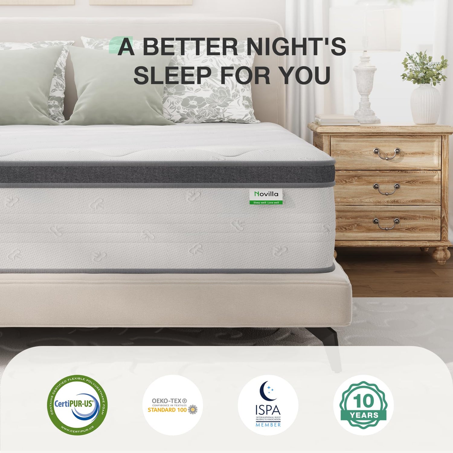 - 【Certified Healthy and Safe】: Rest easy knowing our mattress is CertiPUR-US certified and OEKO-TEX certified, it stands as a trustworthy choice for the health-conscious sleeper. Plus, it's compatible with various bed frames, allowing you to customize your sleep pace. And it comes with a 10-year warranty, ensuring a decade of worry-free, rejuvenating sleep.