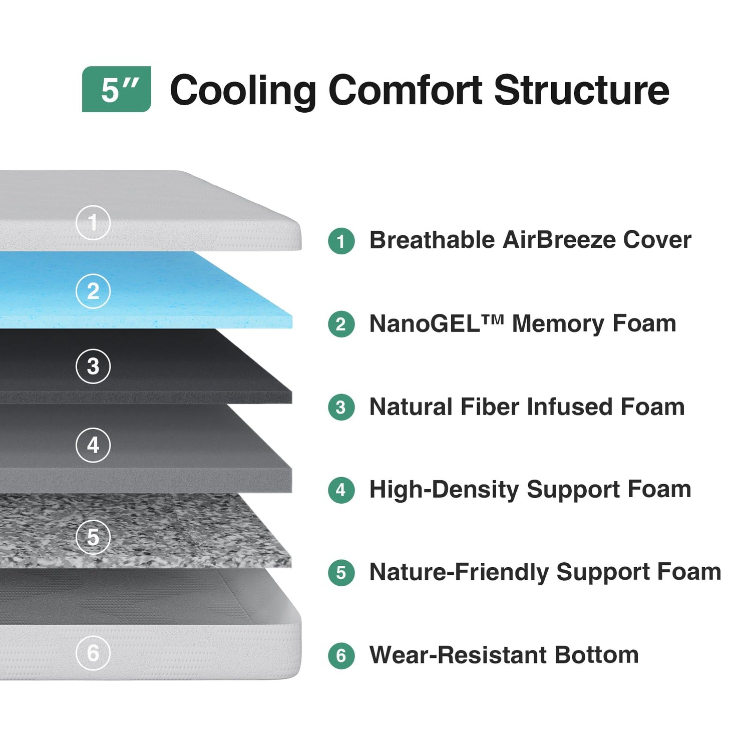 • Cooling & Breathable - The Novilla 5 inch twin size mattress addes 30% more NanoGel, which will increase the heat absorption capacity, promotes airflow and provides a refreshing cooling effect, thereby delivering an enhanced sleep experience. Enjoy all-night comfort and relaxation, say goodbye hot and restless nights.
