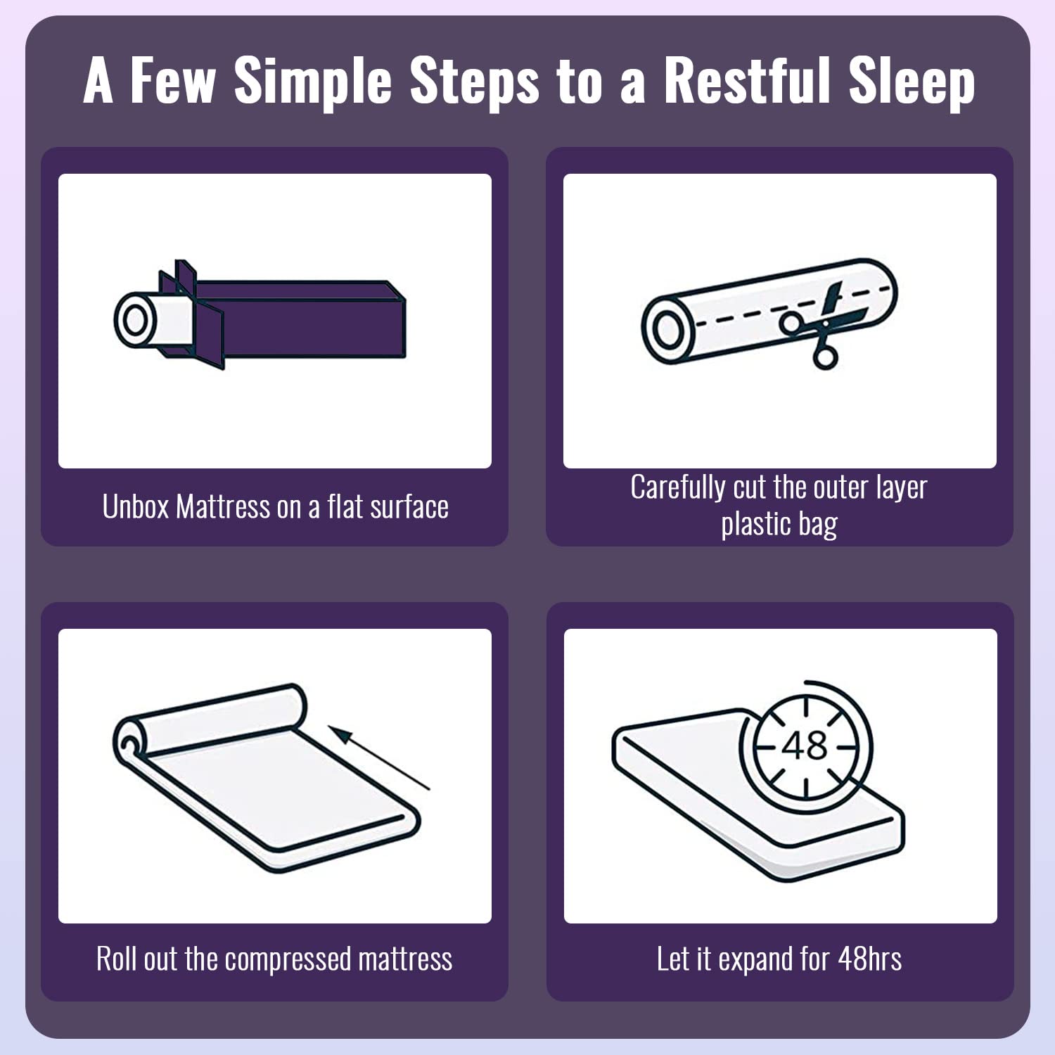 - 【Easy to install and use】: Our bamboo charcoal memory cotton mattresses are packaged in roll wrap. After opening the mattress, please allow 24-72 hours for the mattress to return to its original state. Any memory foam will expand faster in a warm room. In cold temperatures, the mattress may take longer to recover from compression. The expansion time of a mattress may vary depending on the surrounding environment.