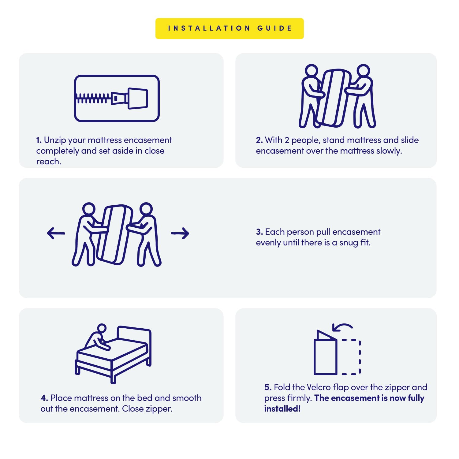 Machine-Washable Convenience: Easily remove the encasement by unzipping and machine washing cold. Tumble dry on low heat or air dry. The protective zipper design ensures easy installation and removal—even when fully encased on a mattress.