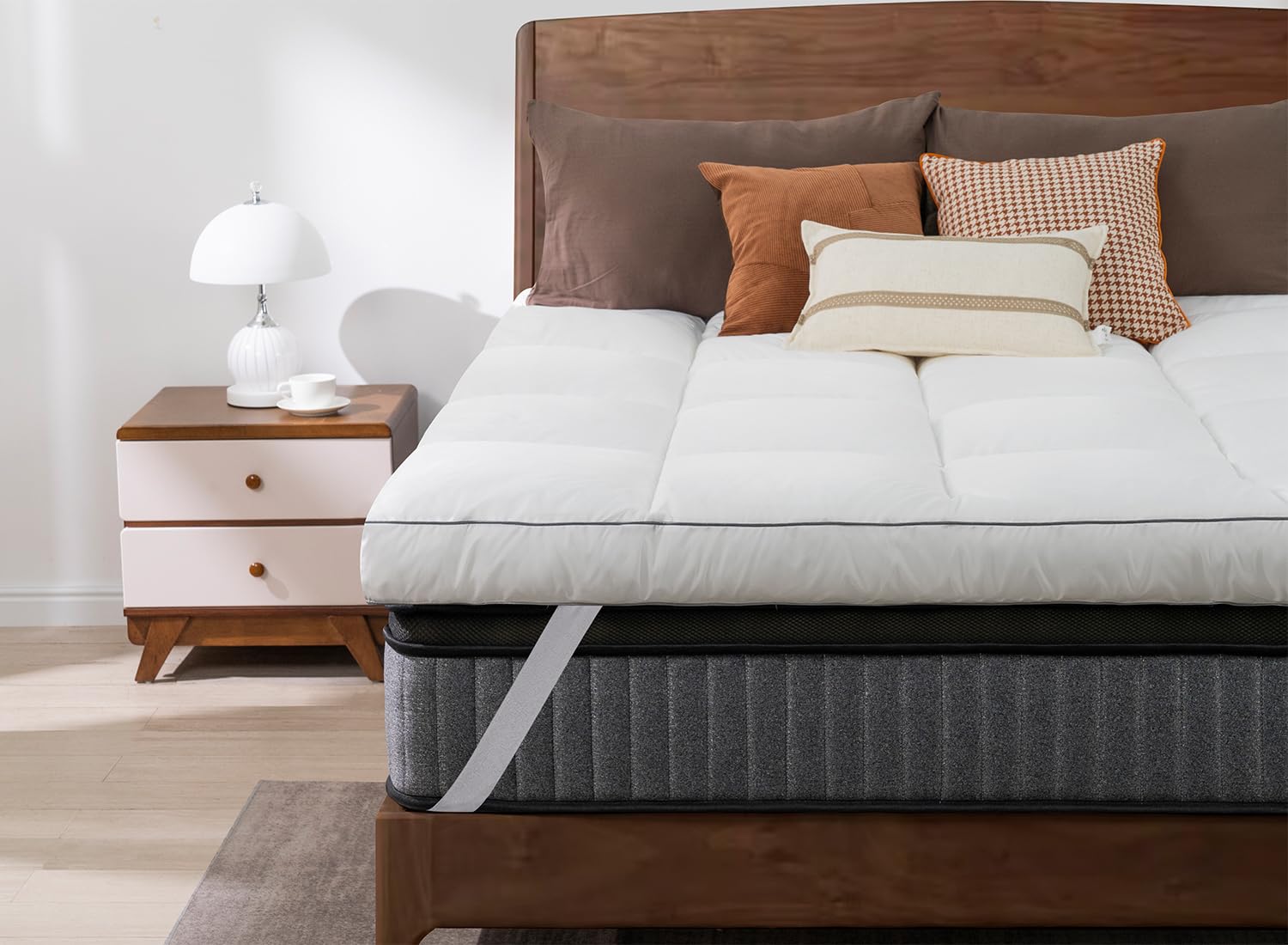 - Stable Anchor Bands: Its classic, high end baffle box to avoid filling from moving or feathers leaking out, besides with extra firm 4 anchor bands stretch your full topper keeps it secure so you're able to relax on a cloud of comfort