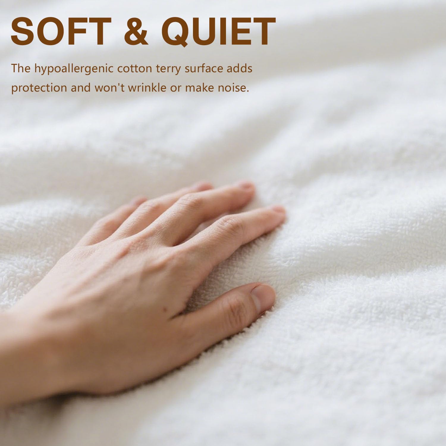 • Silent And Breathable: Our queen size mattress protector zippered features a premium 80% organic cotton + 20% microfiber blend for ultra-soft, noise-free sleep. The breathable fabric promotes airflow to prevent overheating, while the noiseless design lets you move freely—so you stay cool, comfortable, and undisturbed all night long