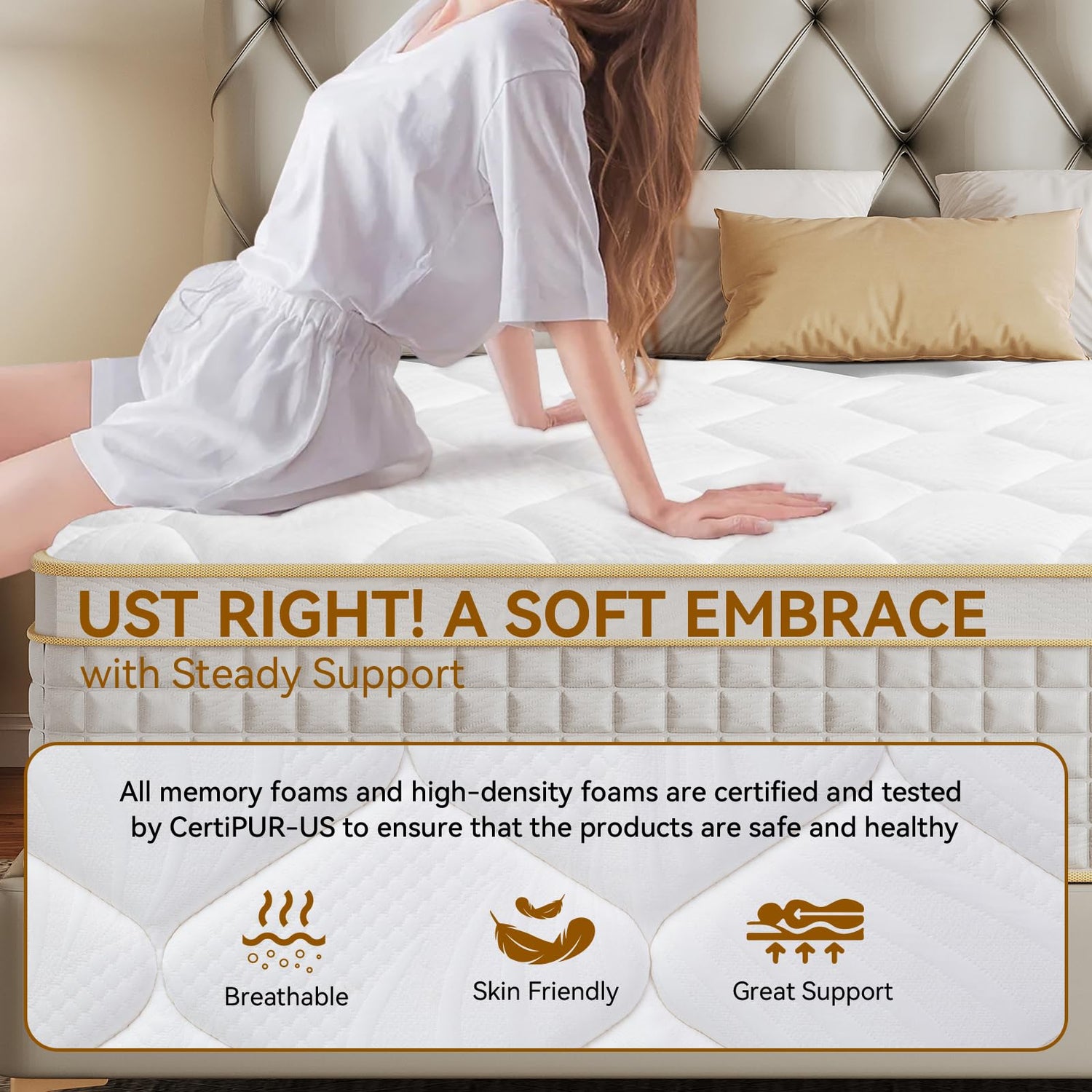 Ruanrest Queen Mattress 12 inch, Hybrid Mattress in a Box with Memory Foam and Pocket Springs for Pressure Relief, Medium Firm Queen Size Mattress, Motion Isolation, CertiPUR-US.