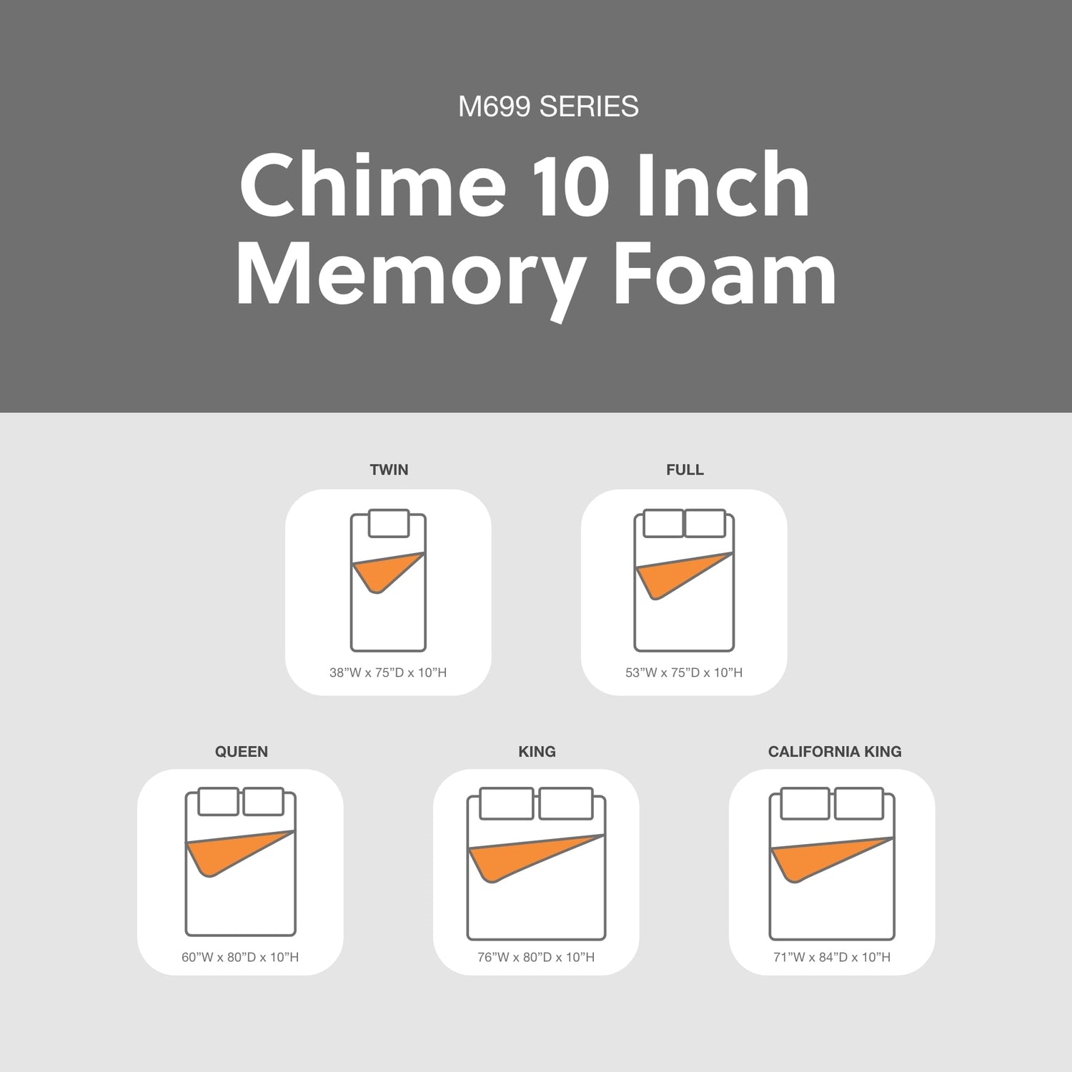 - CALIFORNIA KING SIZE: Measures 71" W x 83.5" D x 10" H and is compatible with most california king bed frames. Bed foundation, box spring and frame available, sold separately