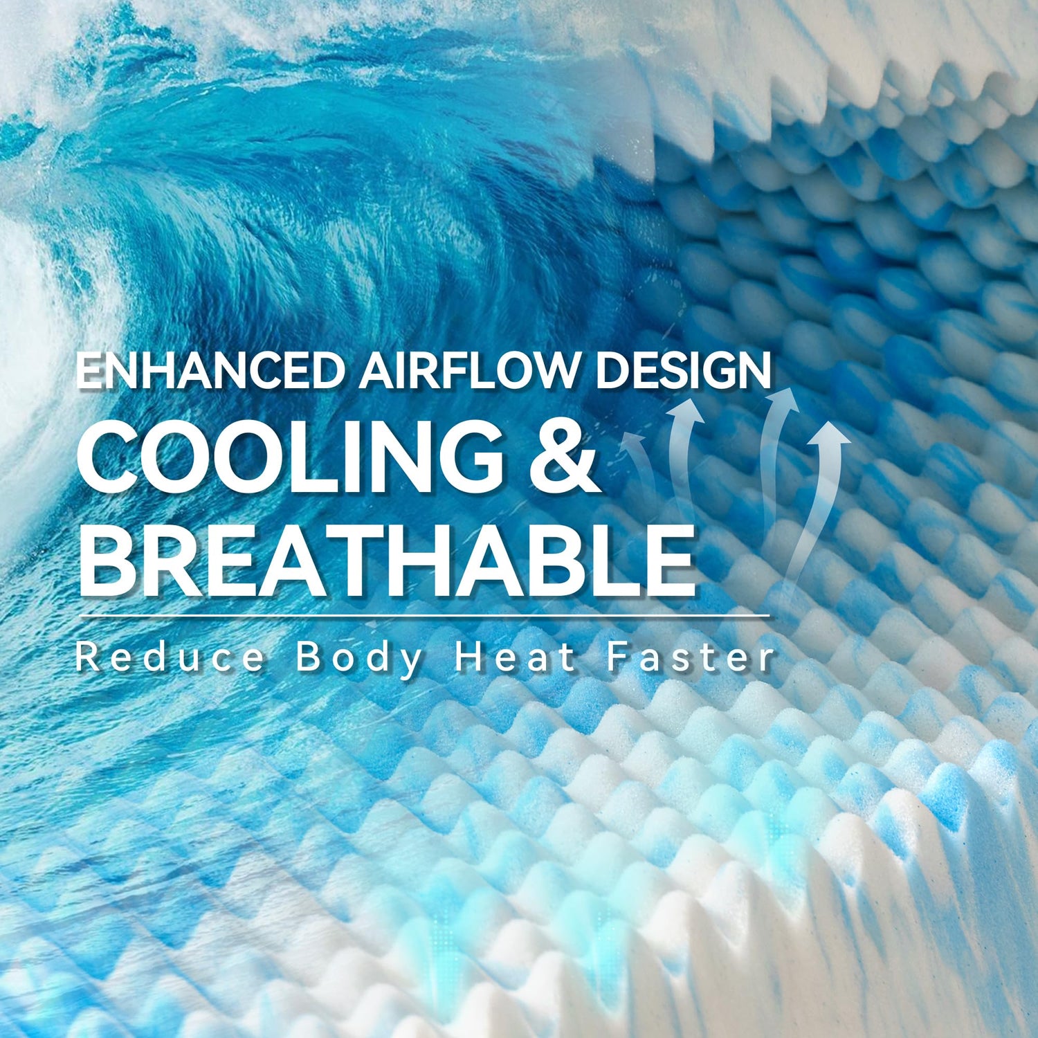 - Superior Breathability: The unique structure with cooling gel infused memory foam enhances airflow and boosts cooling sensation, reducing humidity and heat buildup for a cooler and more comfortable sleeping environment.