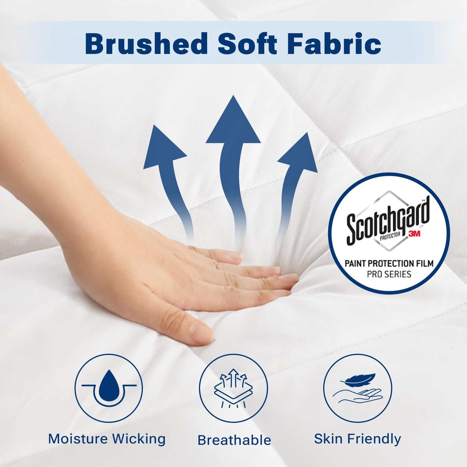 - 3M Scotchgard Fabric: The premium polyester microfiber cover features a 3M Scotchgard Moisture Management Treatment that wicks away moisture to keep you crisp and cool. Experience lasting freshness and enjoy a more comfortable, restful sleep