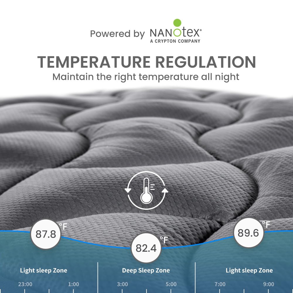 • COOLING BREATHABLE - Mattress pad with new NANOTEX Coolest Comfort Technology features moisture-wicking and fast-drying to actually balance your body temperature throughout the night. The sleep surface is treated with an embossed process, which is usually applied to sports fabrics, making it more breathable and stylish than ordinary material and bringing an advanced dynamic vibe to your bedroom.